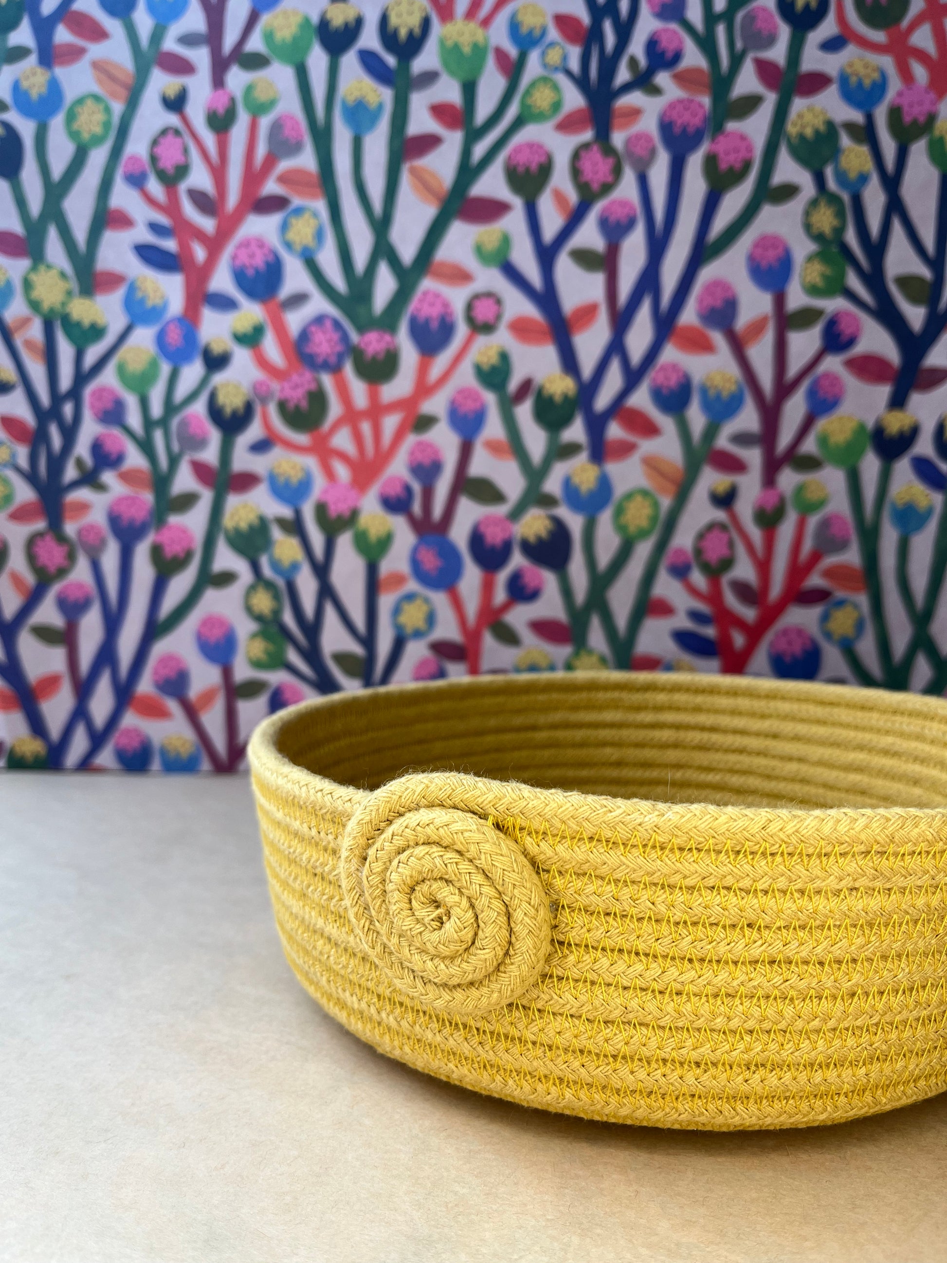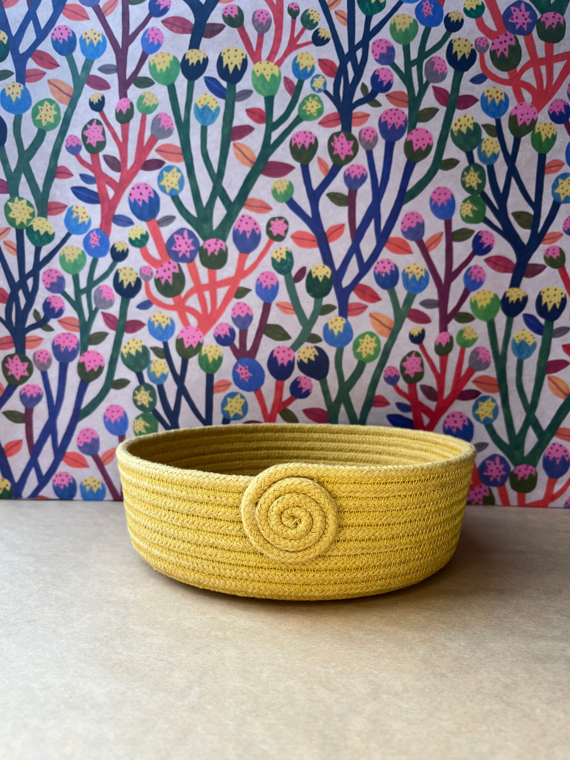 Every basket are unique and handmade by me in my studio in the Outer HebridesI use cotton rope made in England. Due to the handmade work, the diameter and the high can vary.