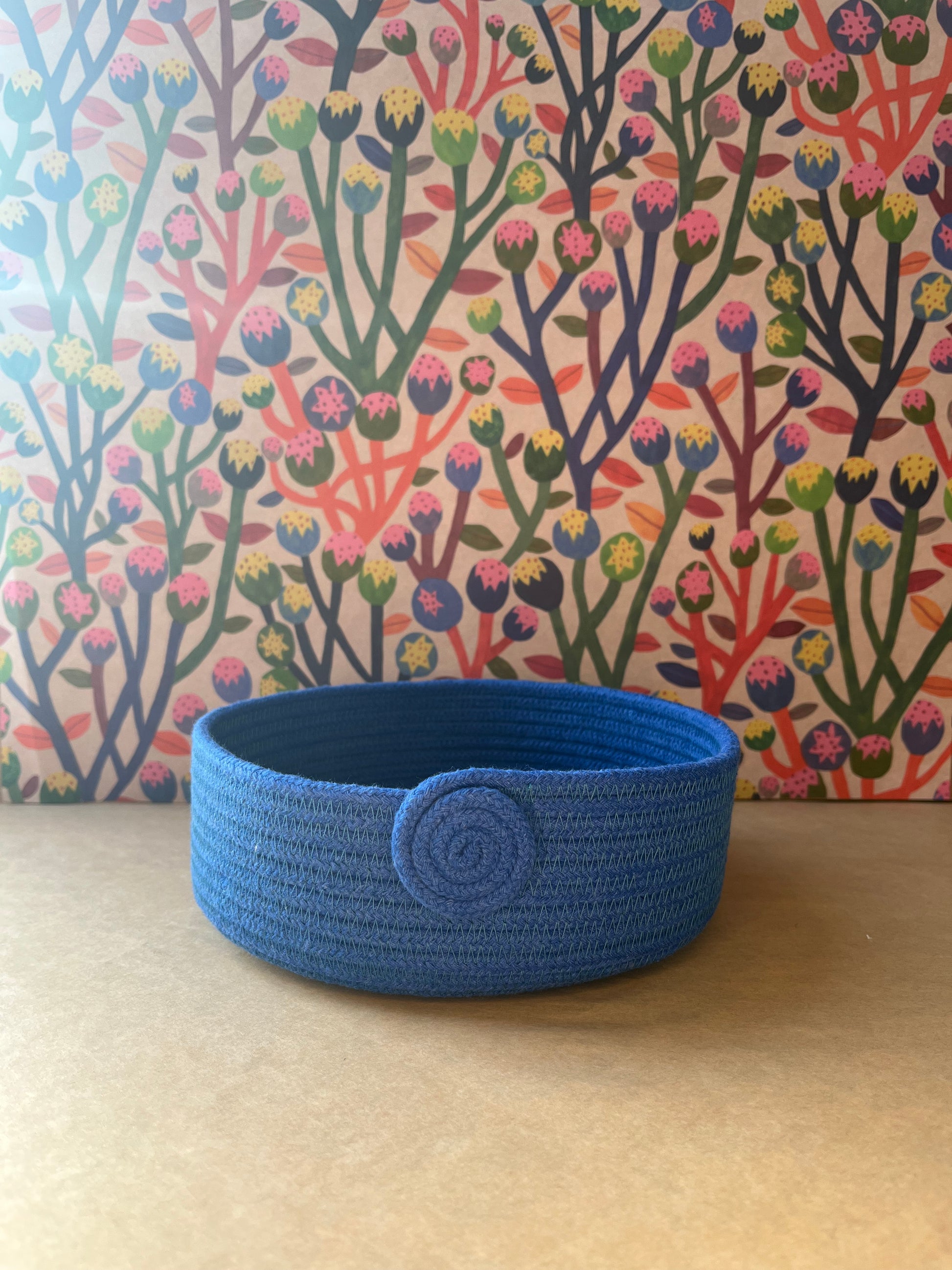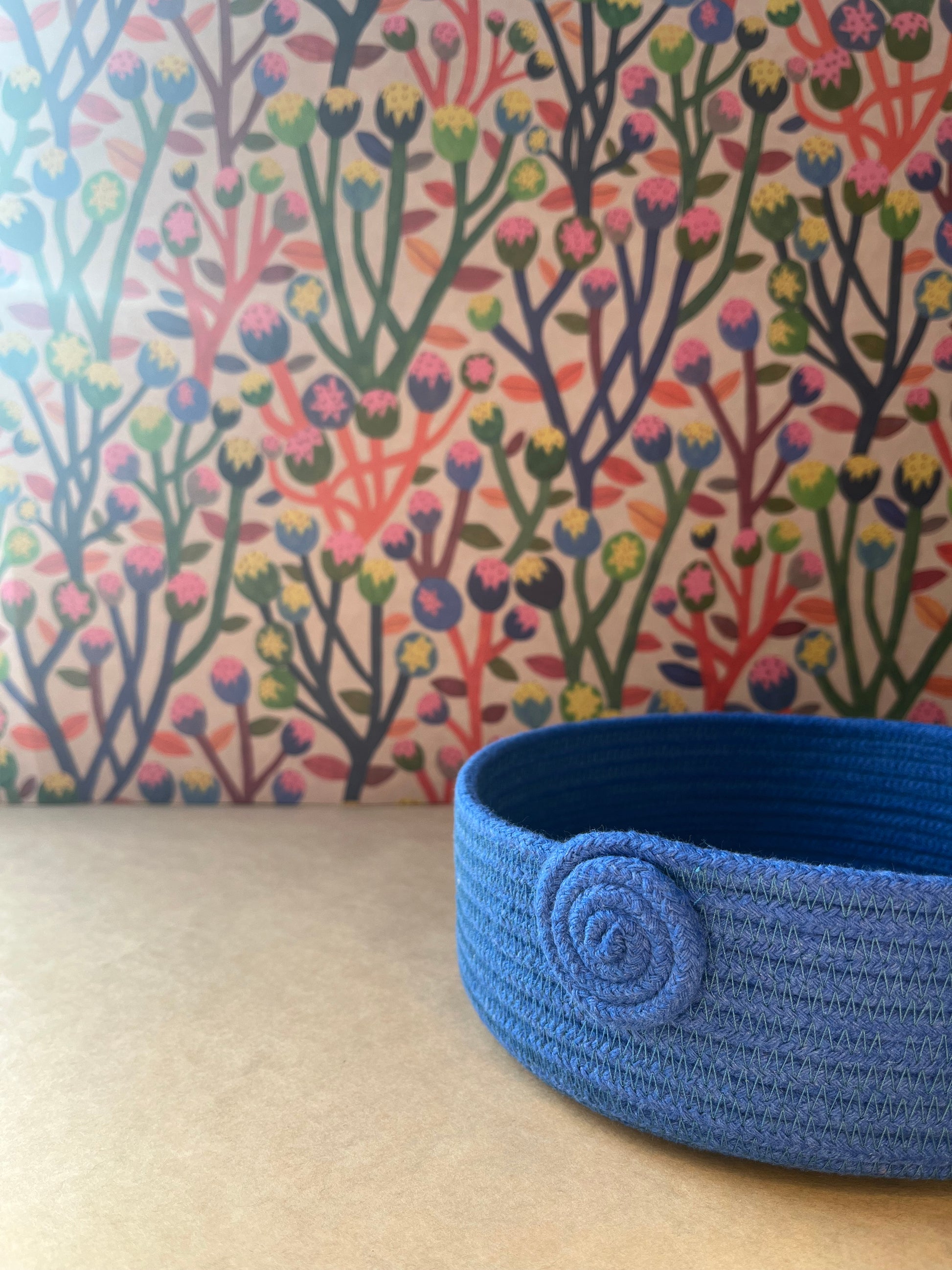 Every basket are unique and handmade by me in my studio in the Outer HebridesI use cotton rope made in England. Due to the handmade work, the diameter and the high can vary.
