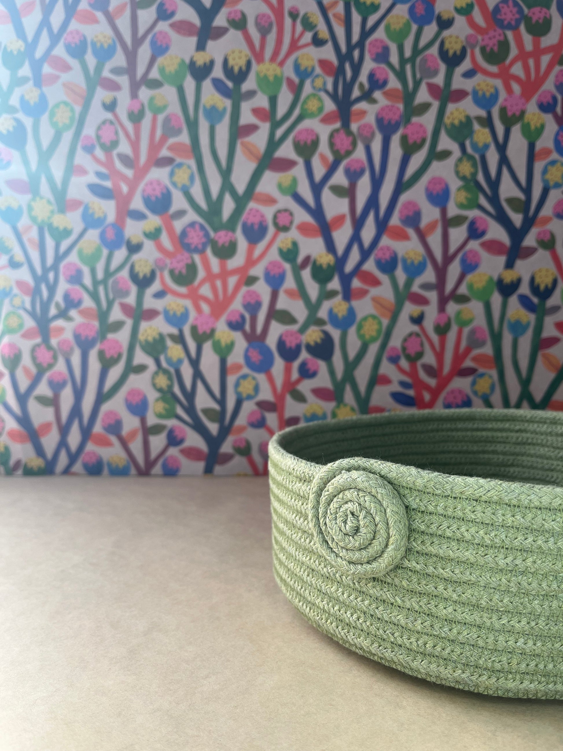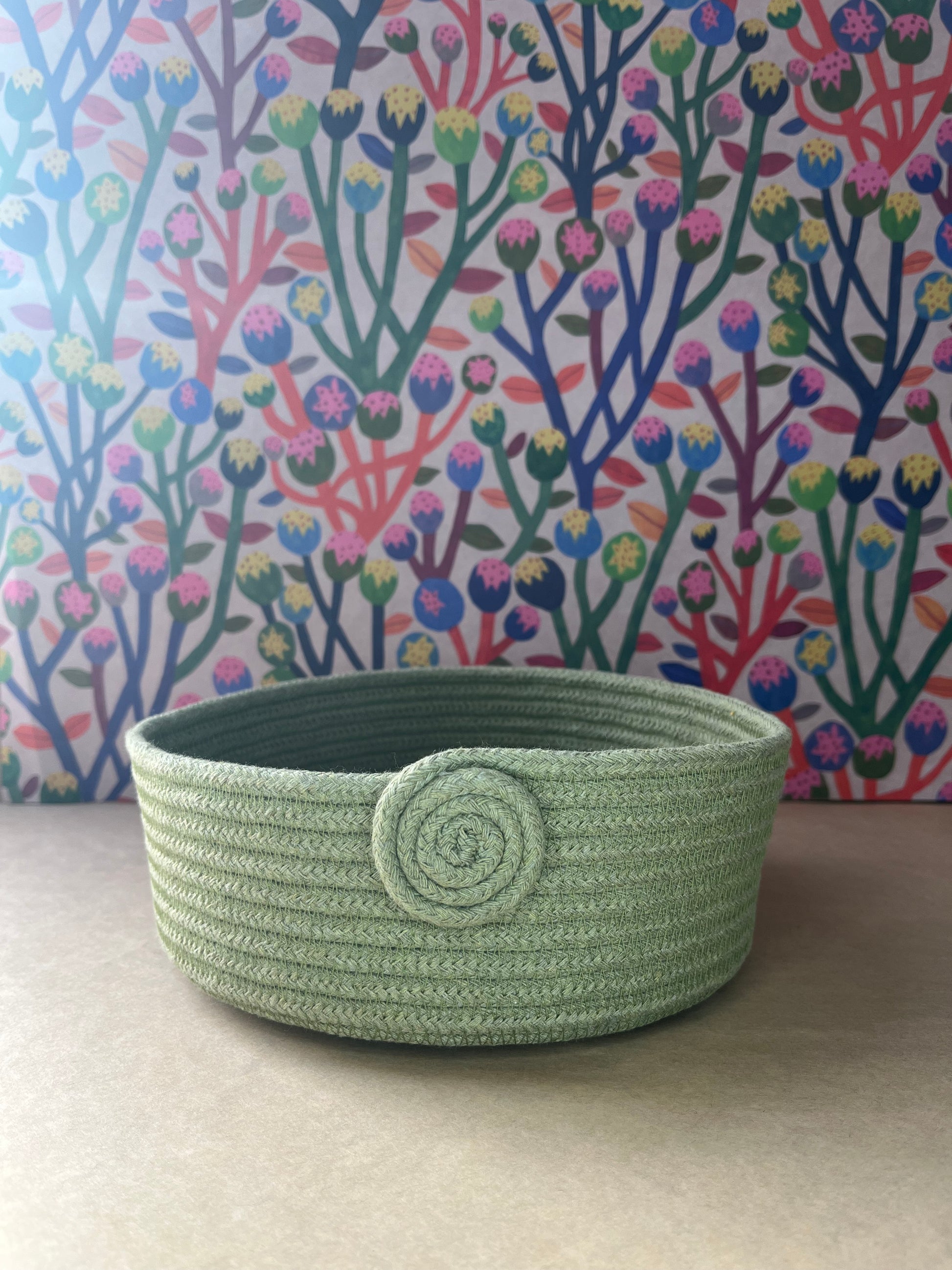 Every basket are unique and handmade by me in my studio in the Outer HebridesI use cotton rope made in England. Due to the handmade work, the diameter and the high can vary.