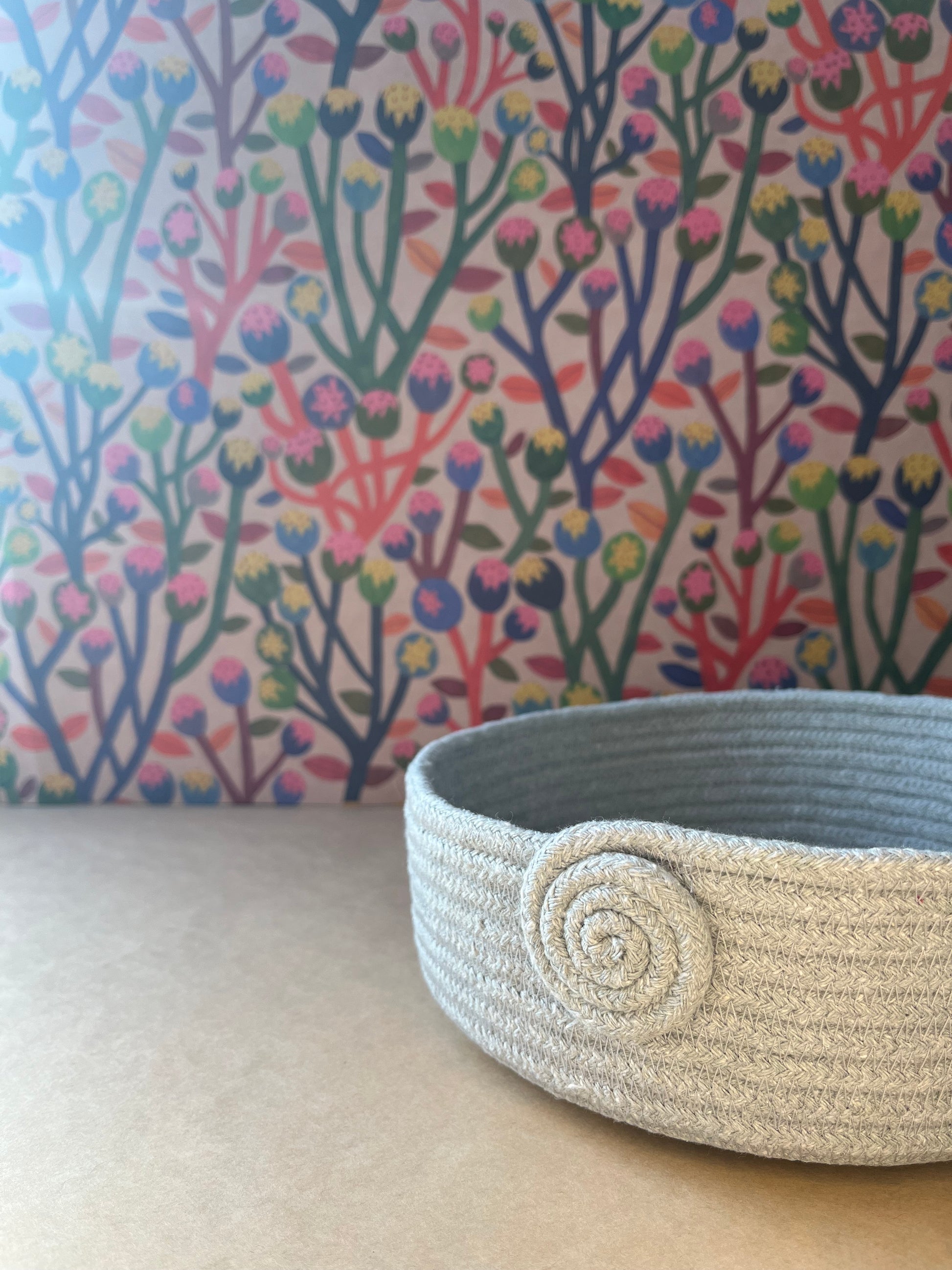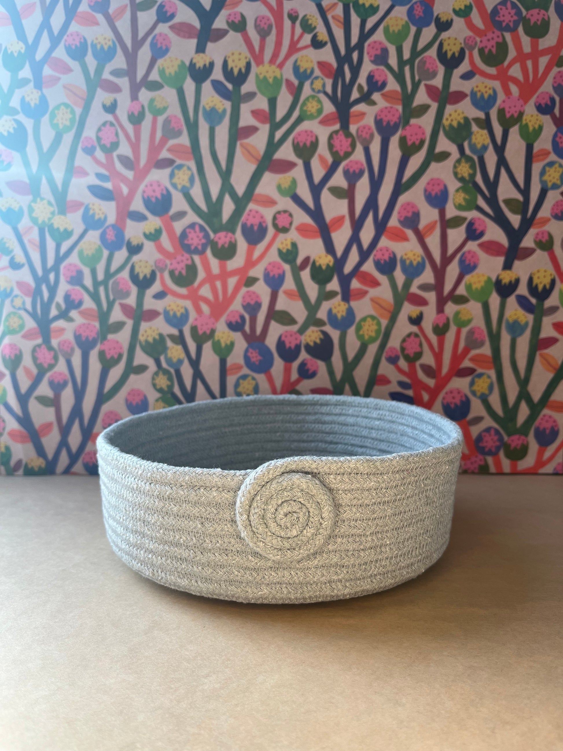 Every basket are unique and handmade by me in my studio in the Outer HebridesI use cotton rope made in England. Due to the handmade work, the diameter and the high can vary.