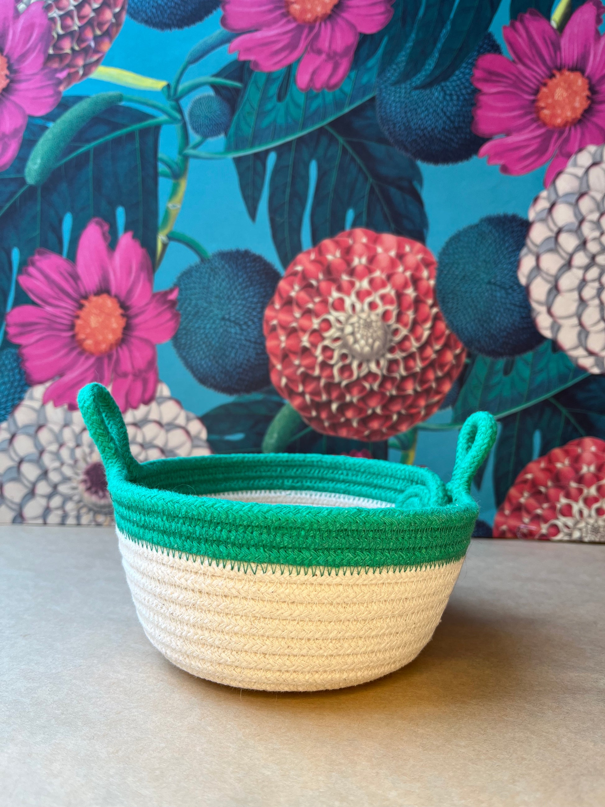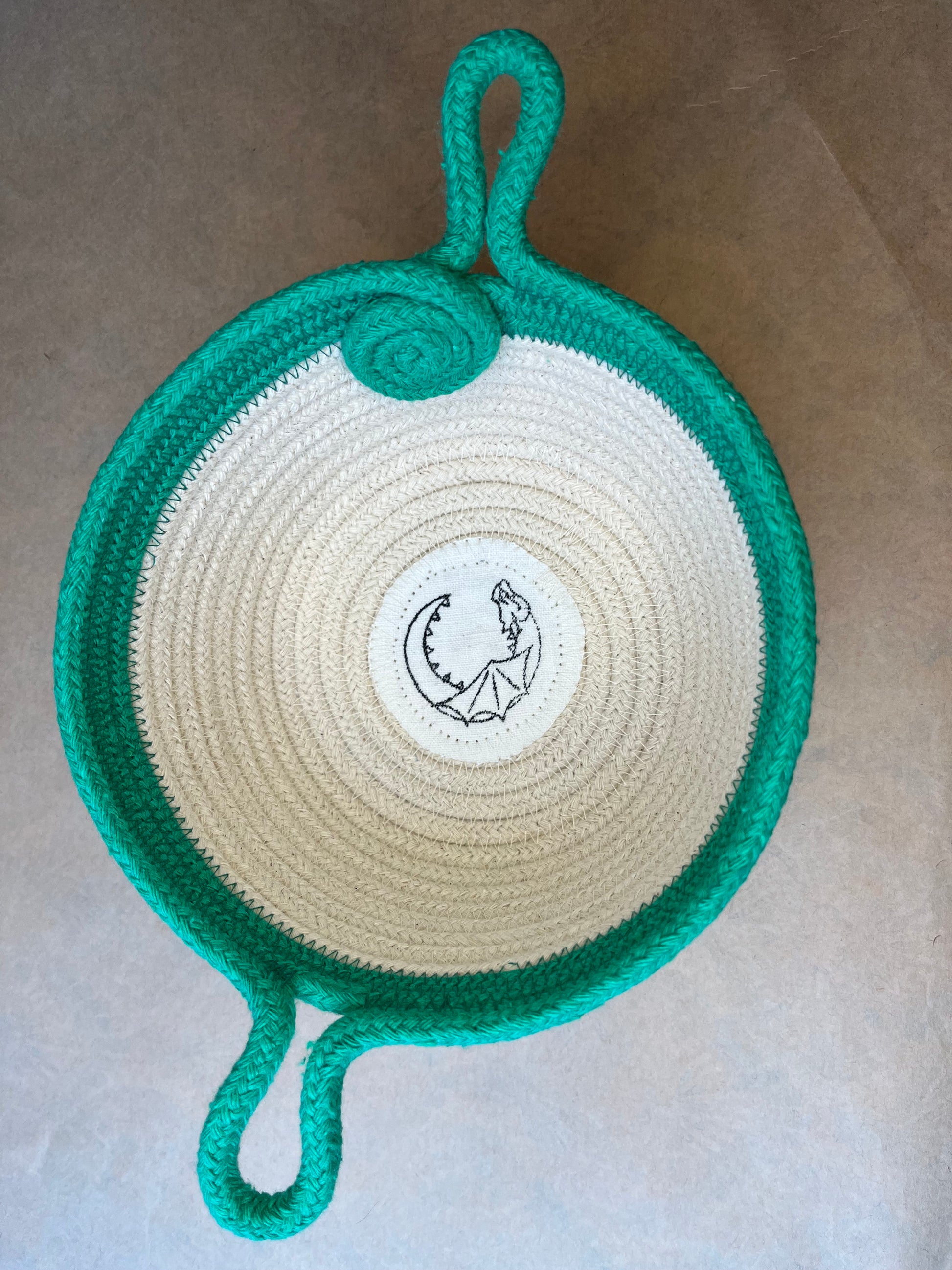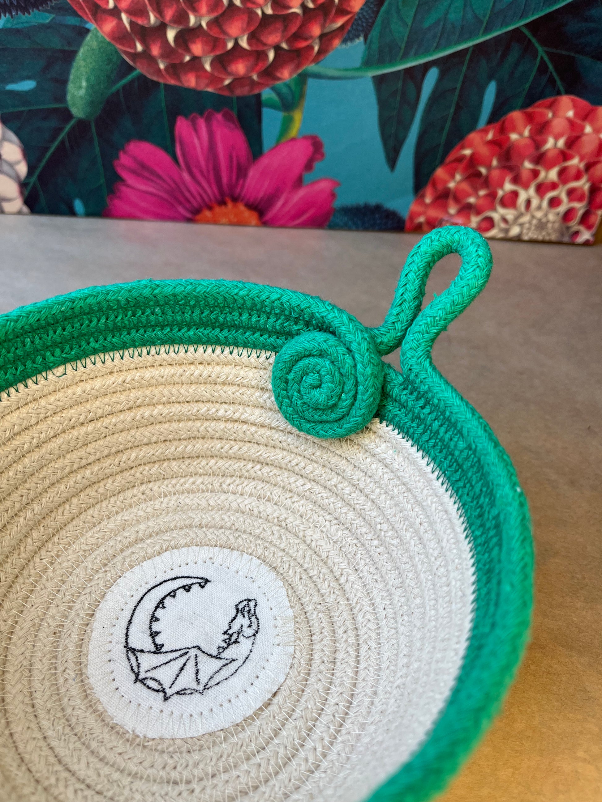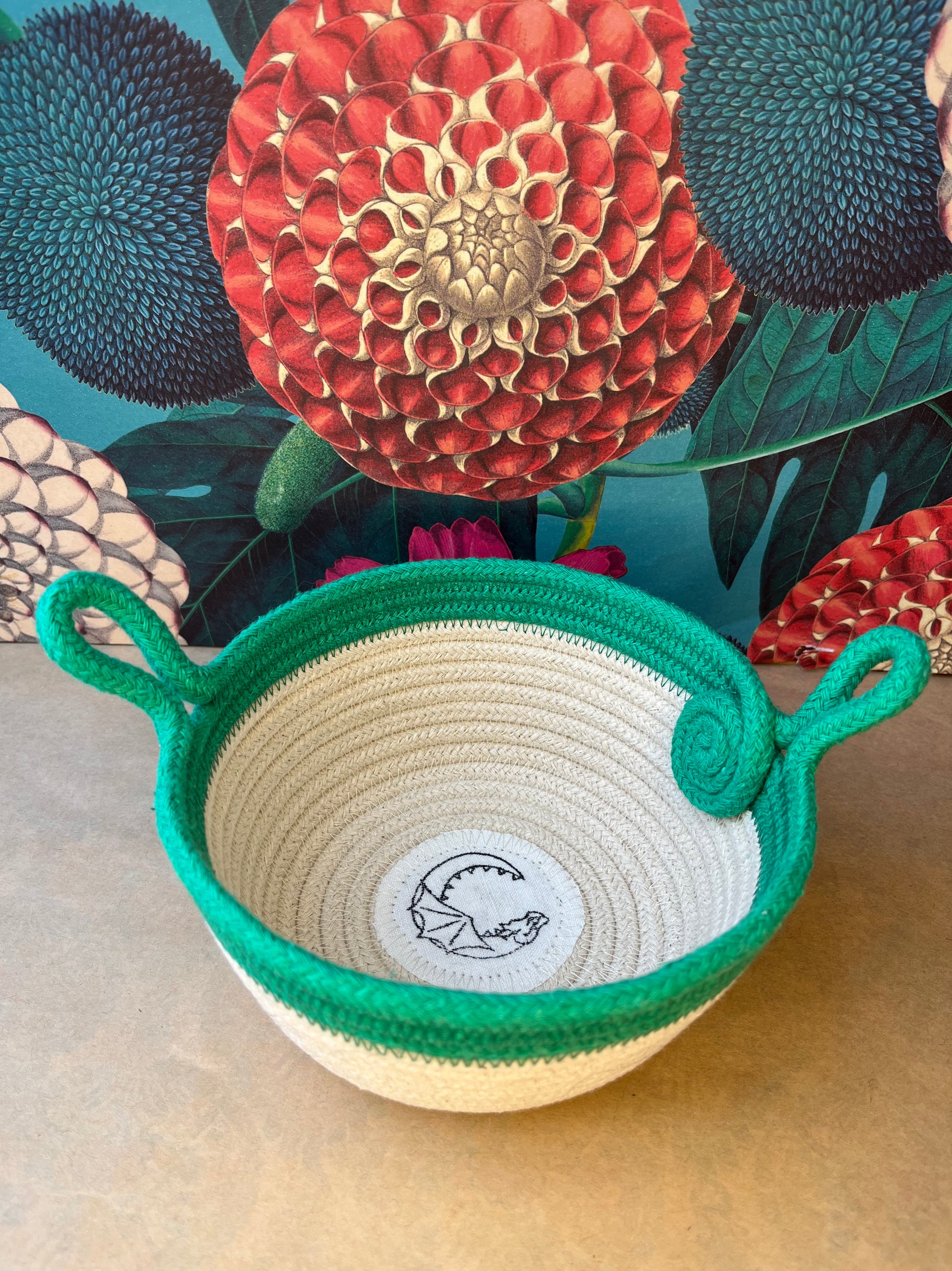 Every basket are unique and handmade by me in my studio in the Outer HebridesI use cotton rope made in England. Due to the handmade work, the diameter and the high can vary.