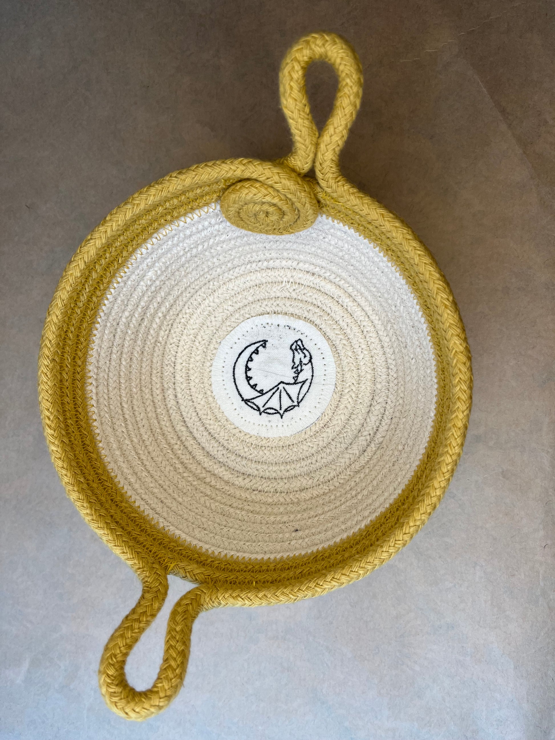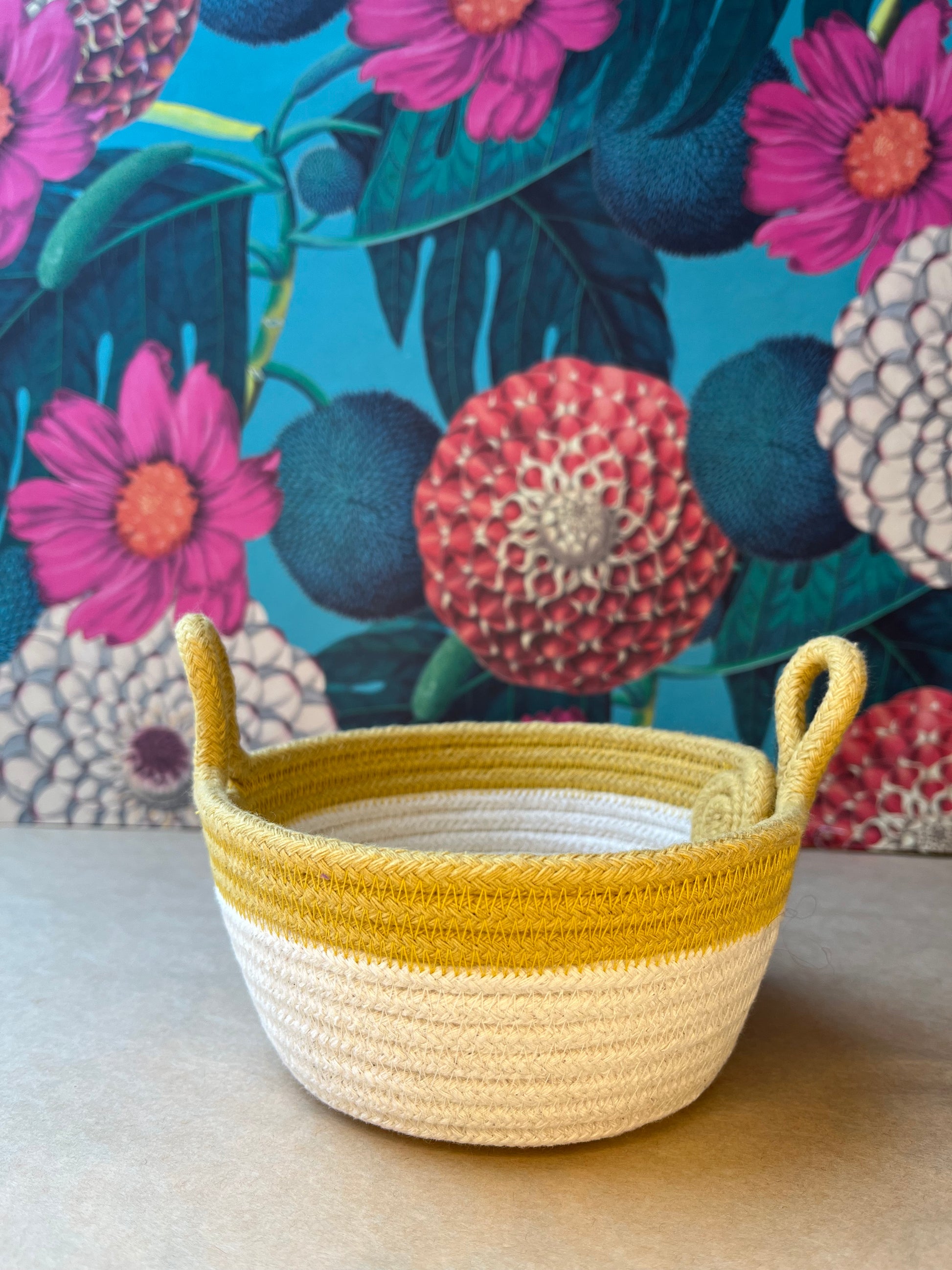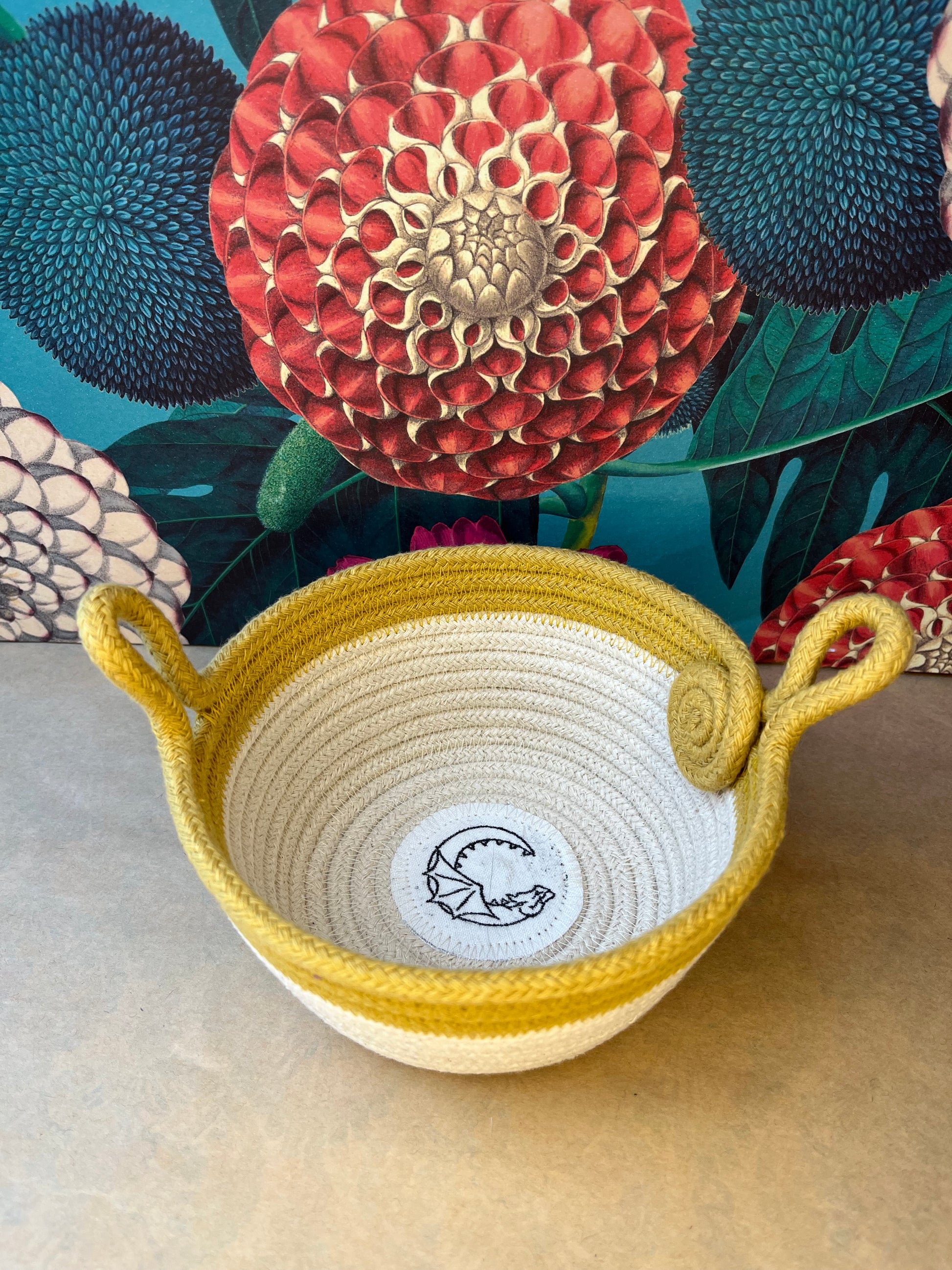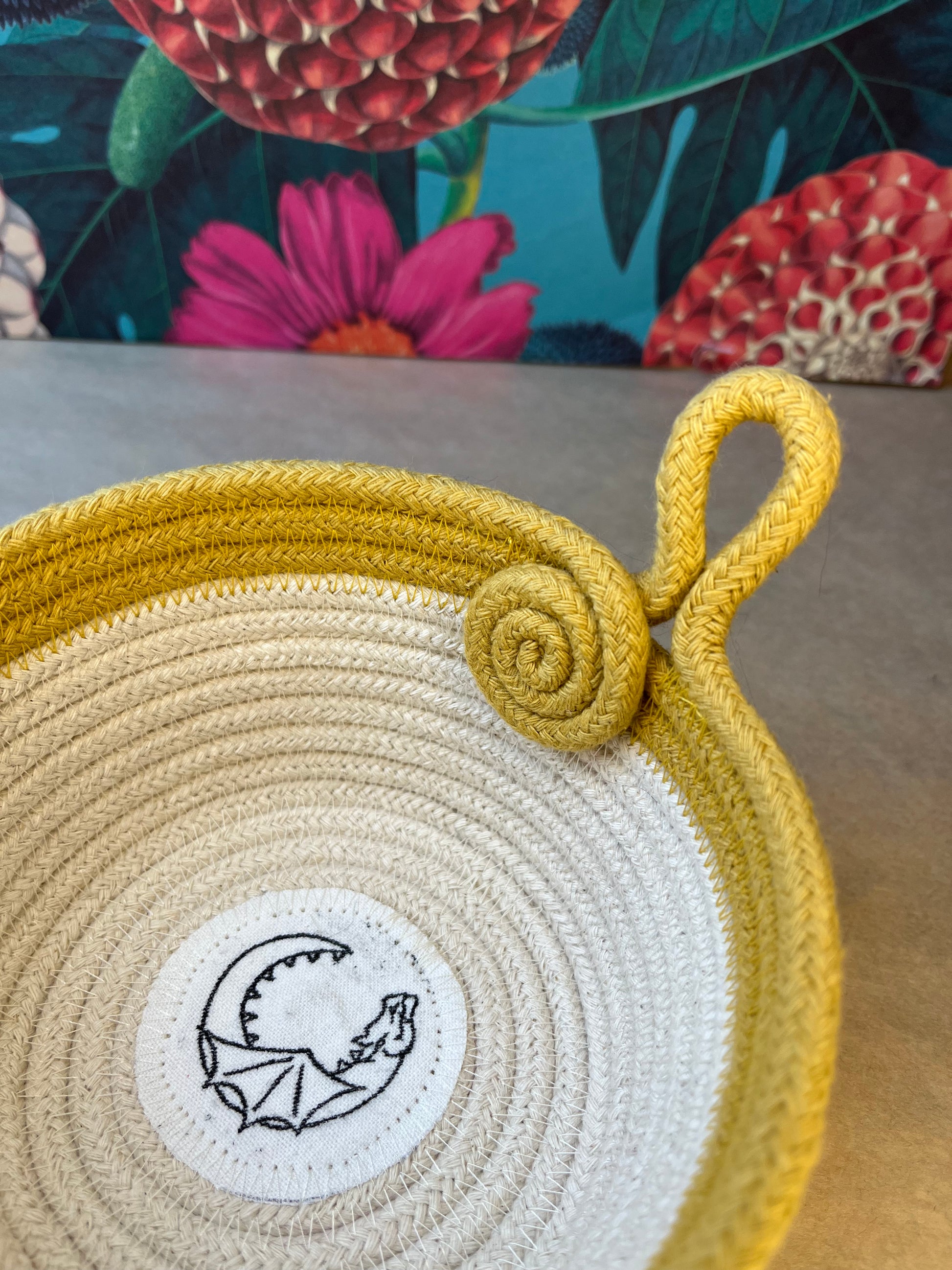 Every basket are unique and handmade by me in my studio in the Outer HebridesI use cotton rope made in England. Due to the handmade work, the diameter and the high can vary.