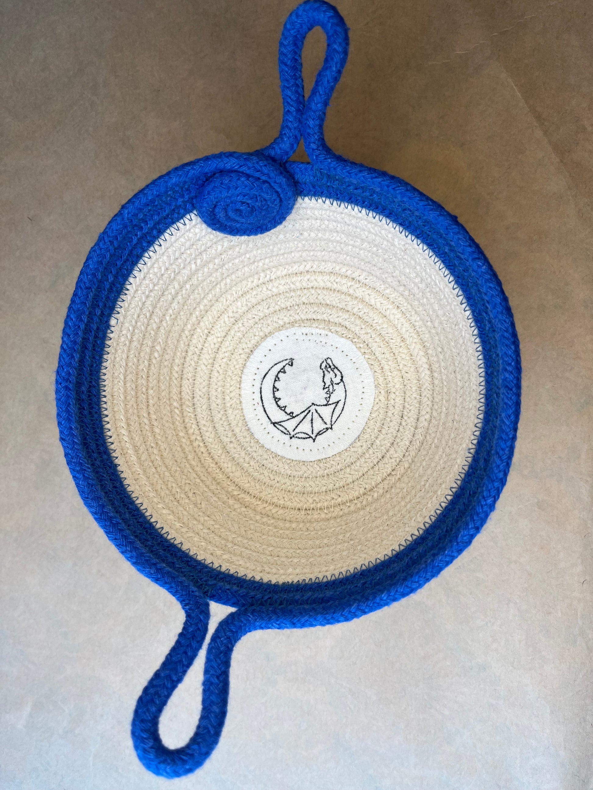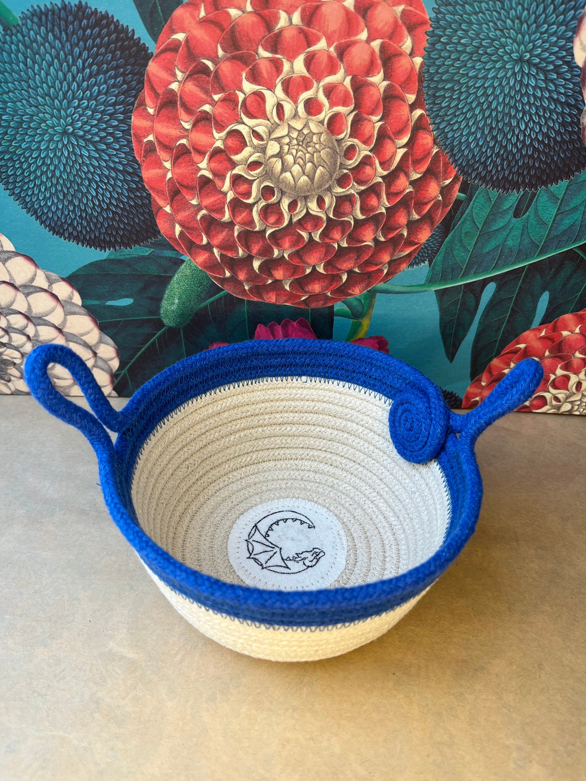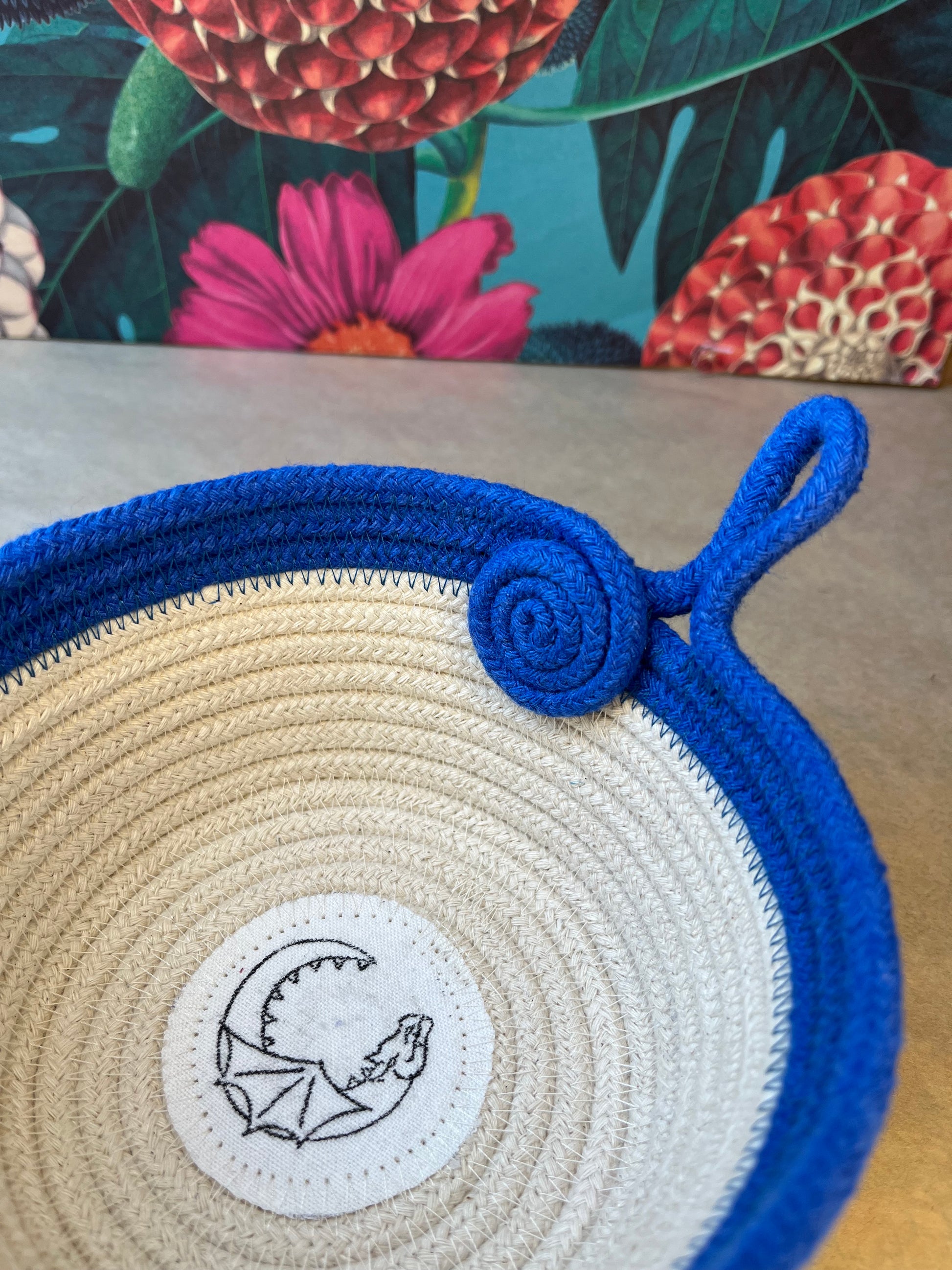 Every basket are unique and handmade by me in my studio in the Outer HebridesI use cotton rope made in England. Due to the handmade work, the diameter and the high can vary.