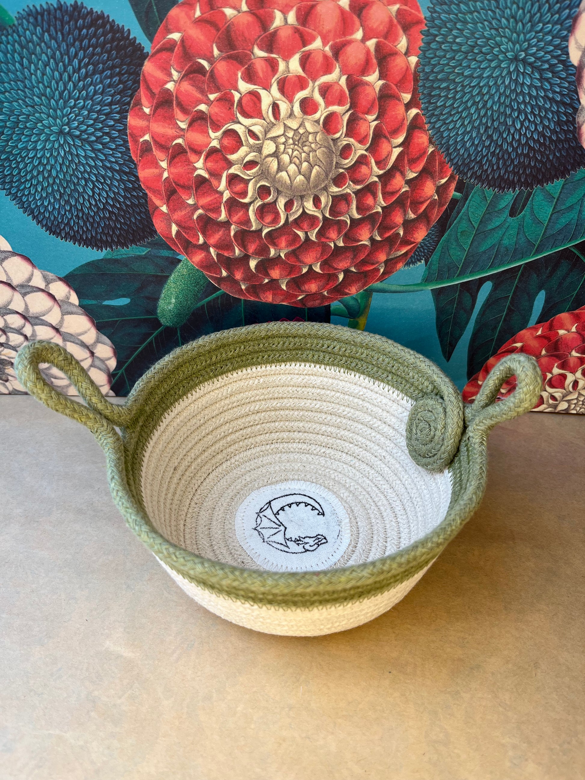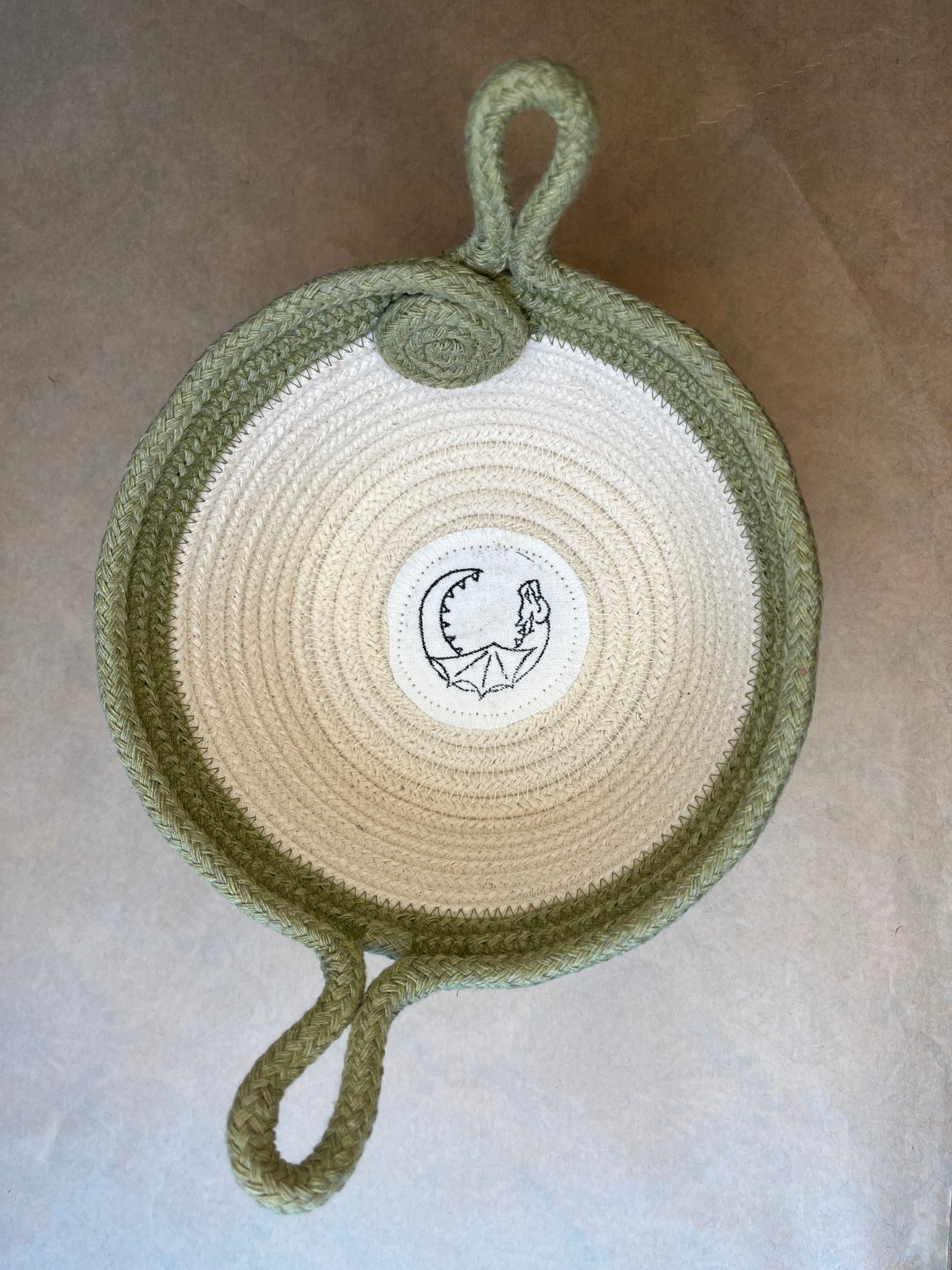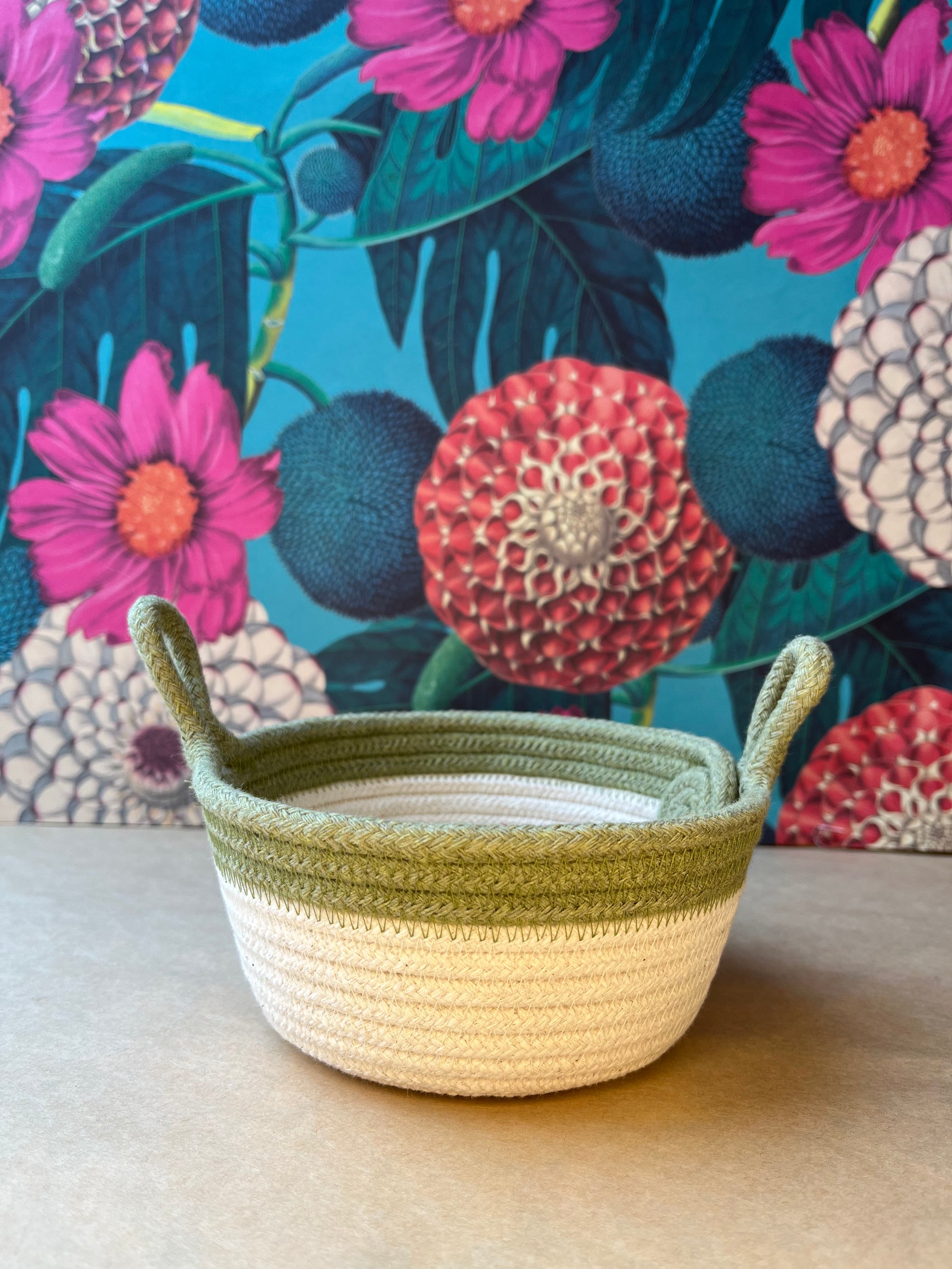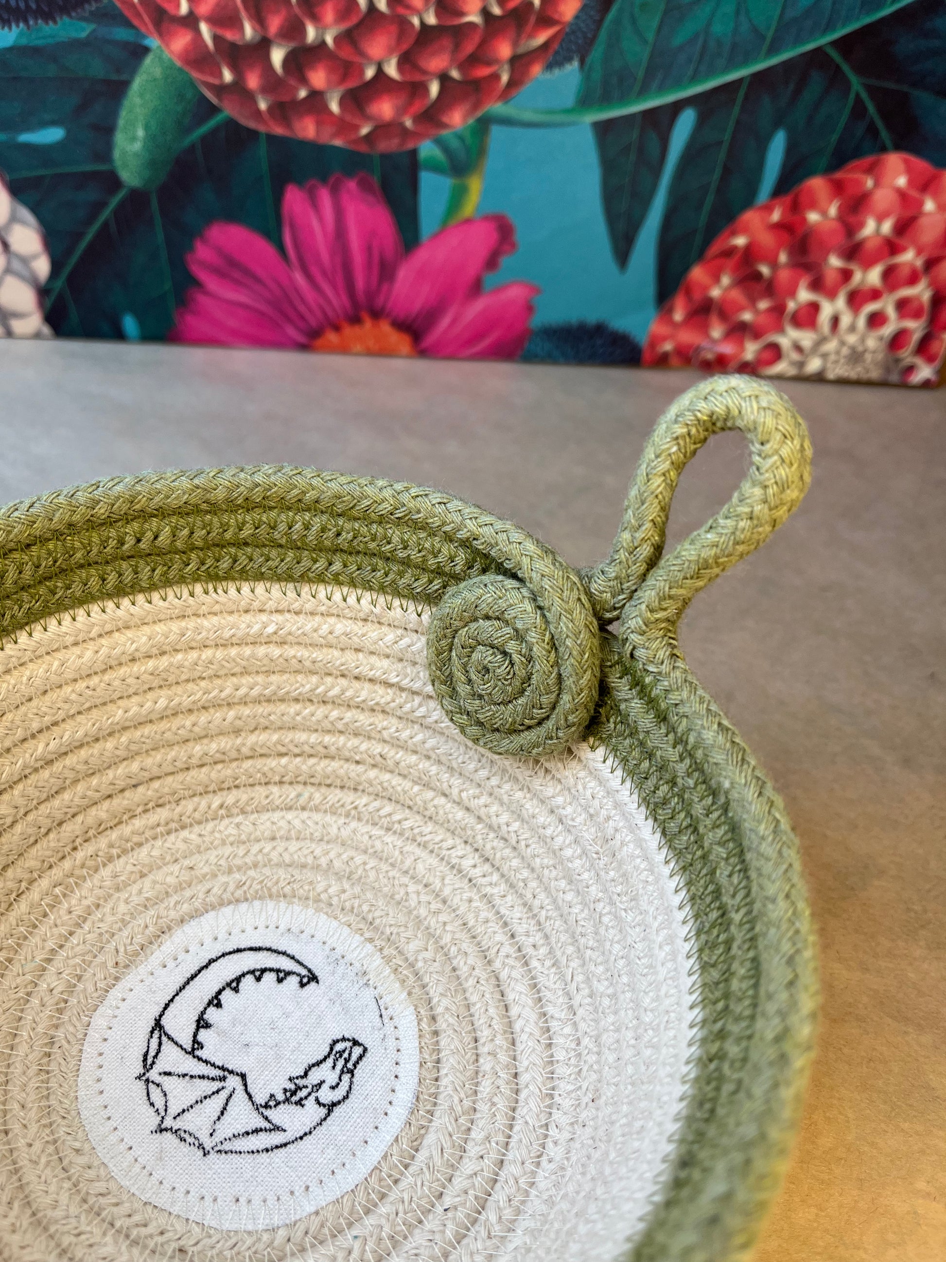 Every basket are unique and handmade by me in my studio in the Outer HebridesI use cotton rope made in England. Due to the handmade work, the diameter and the high can vary.