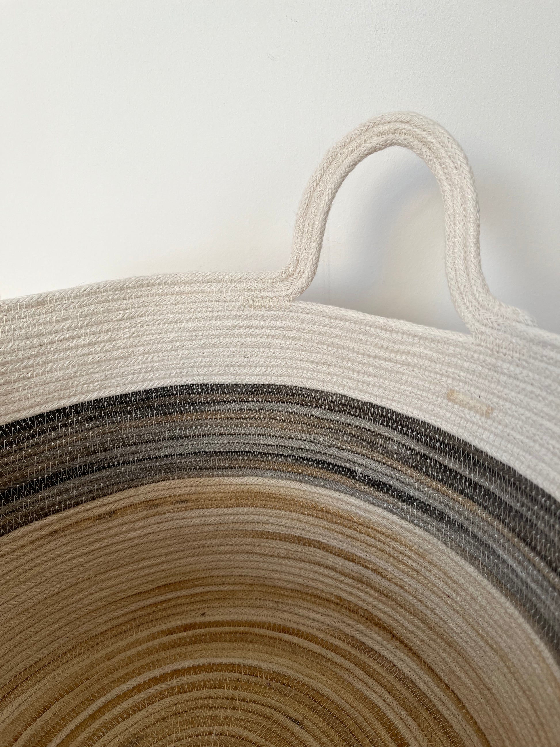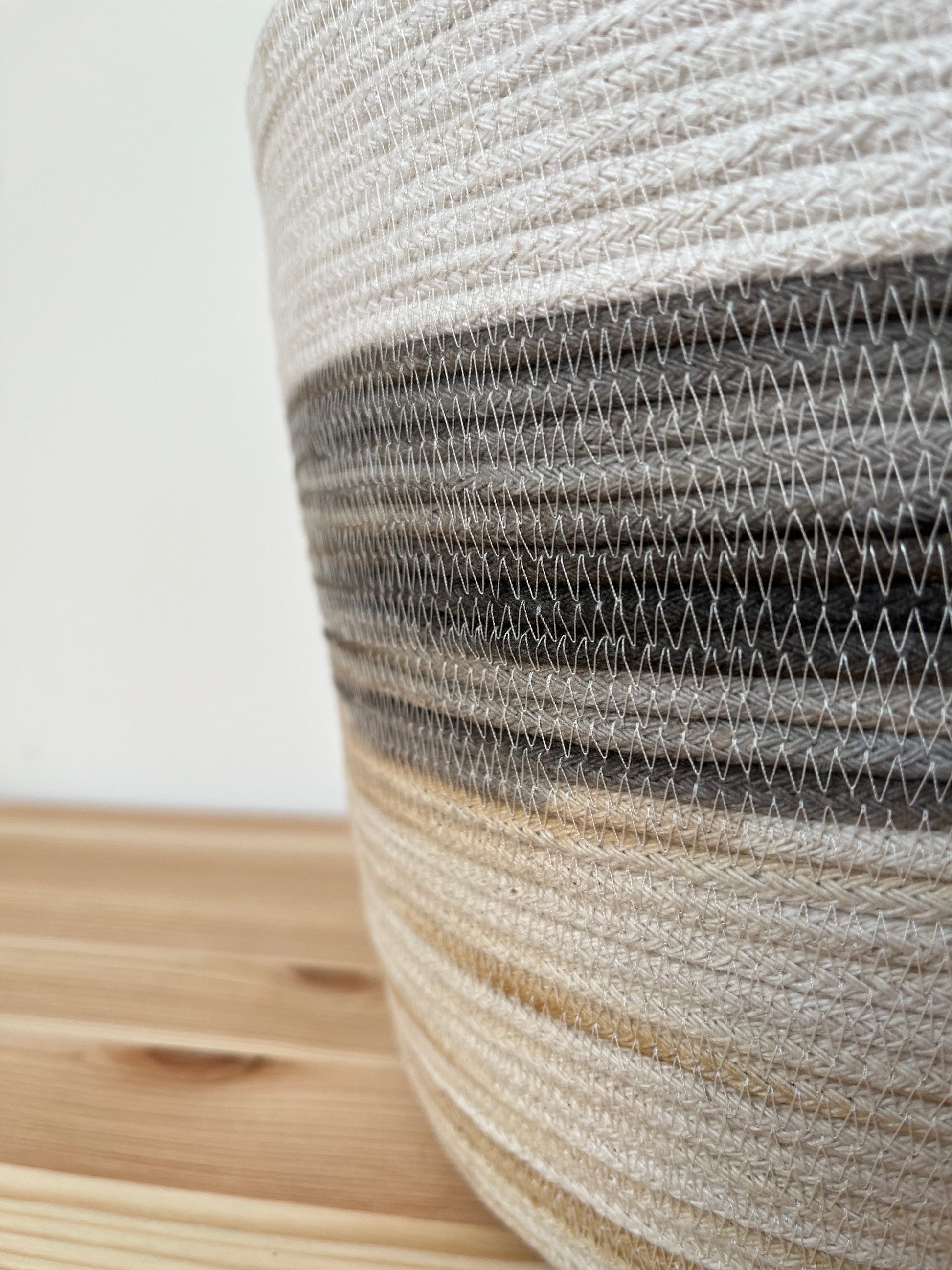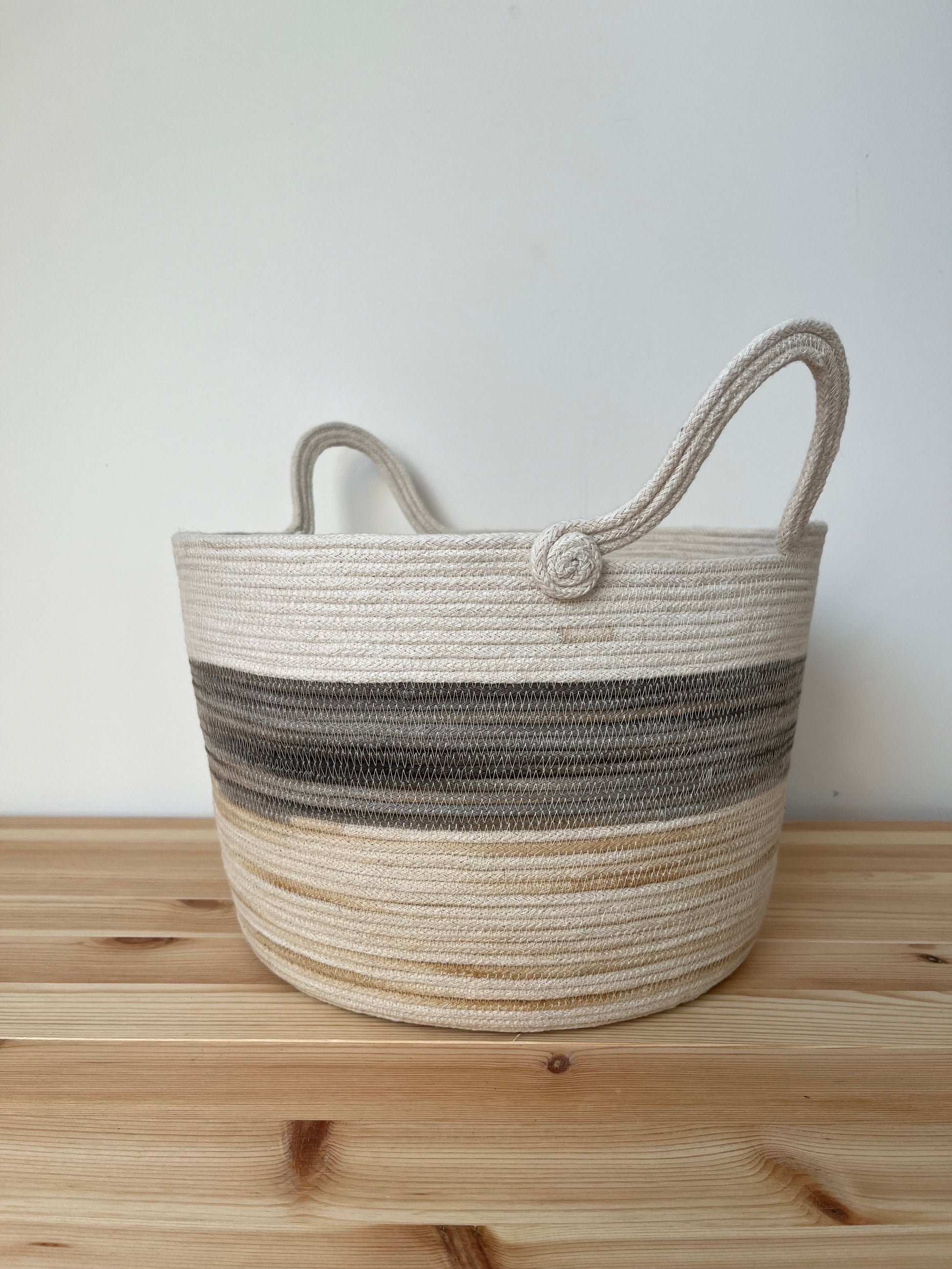 Every basket are unique and handmade by me in my studio in the Outer Hebrides. I use cotton rope made in England that I dye with plants growing in the Outer Hebrides or from my kitchen wastes. Due to the handmade work, the diameter and the high can vary.