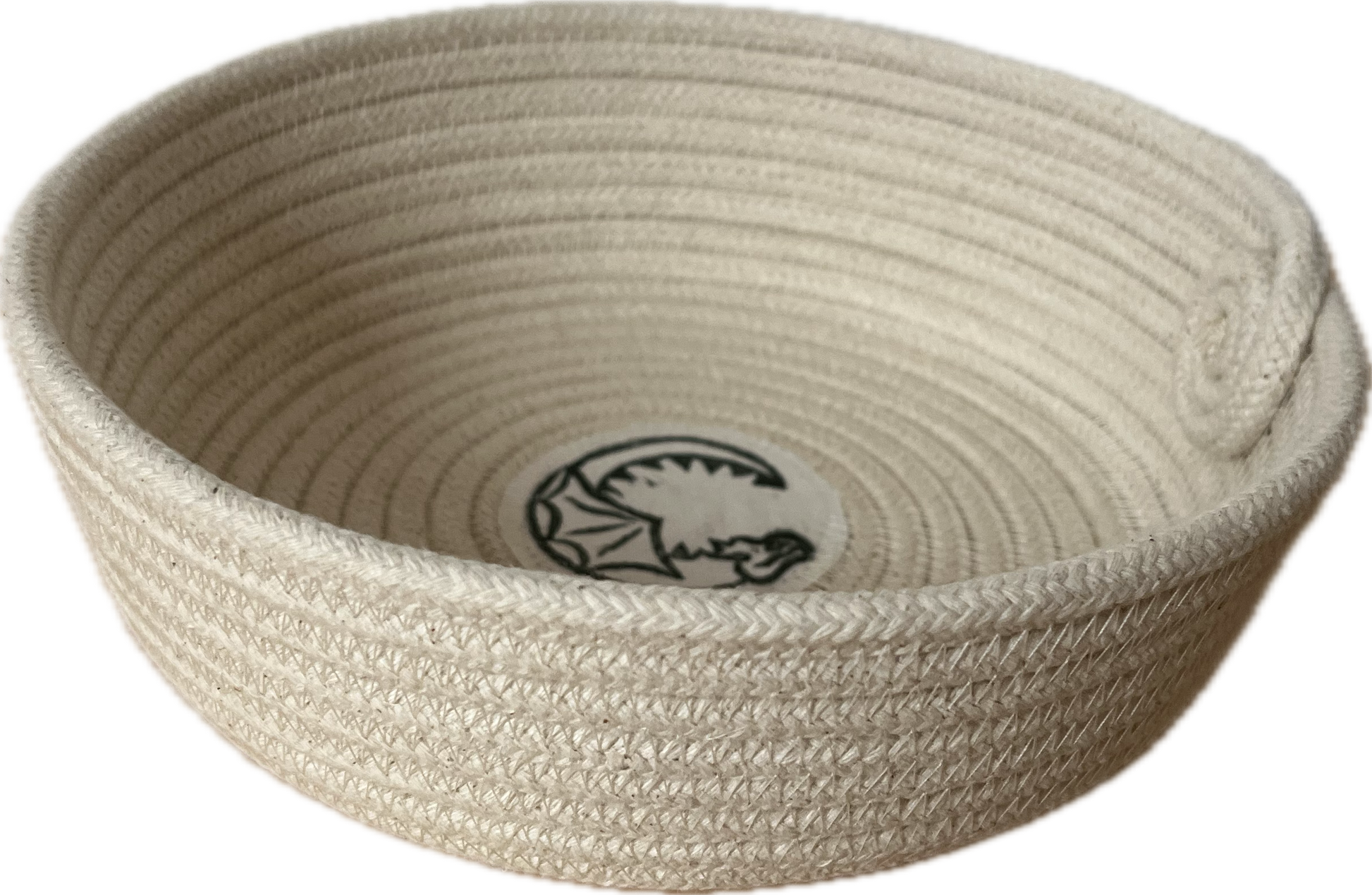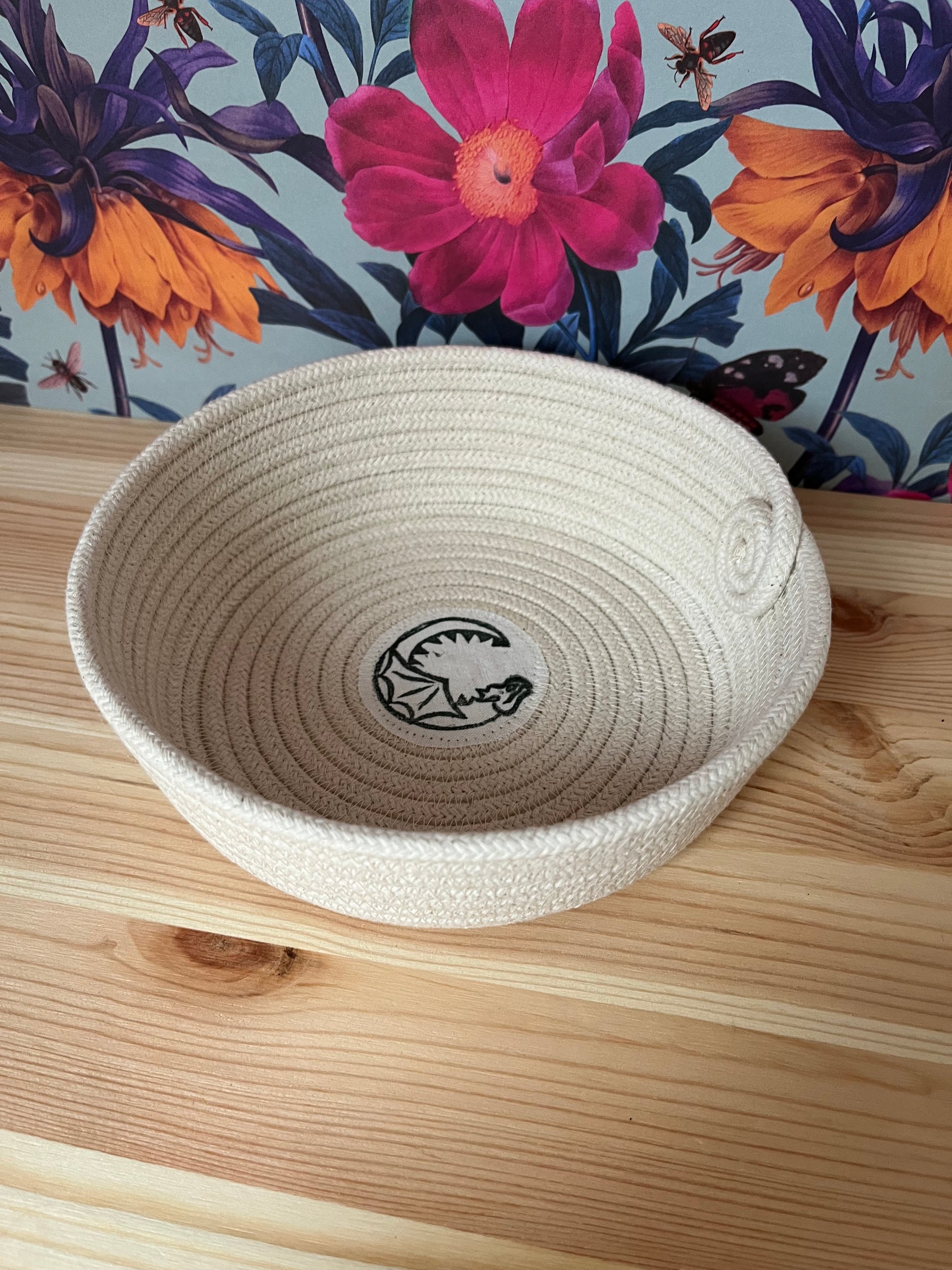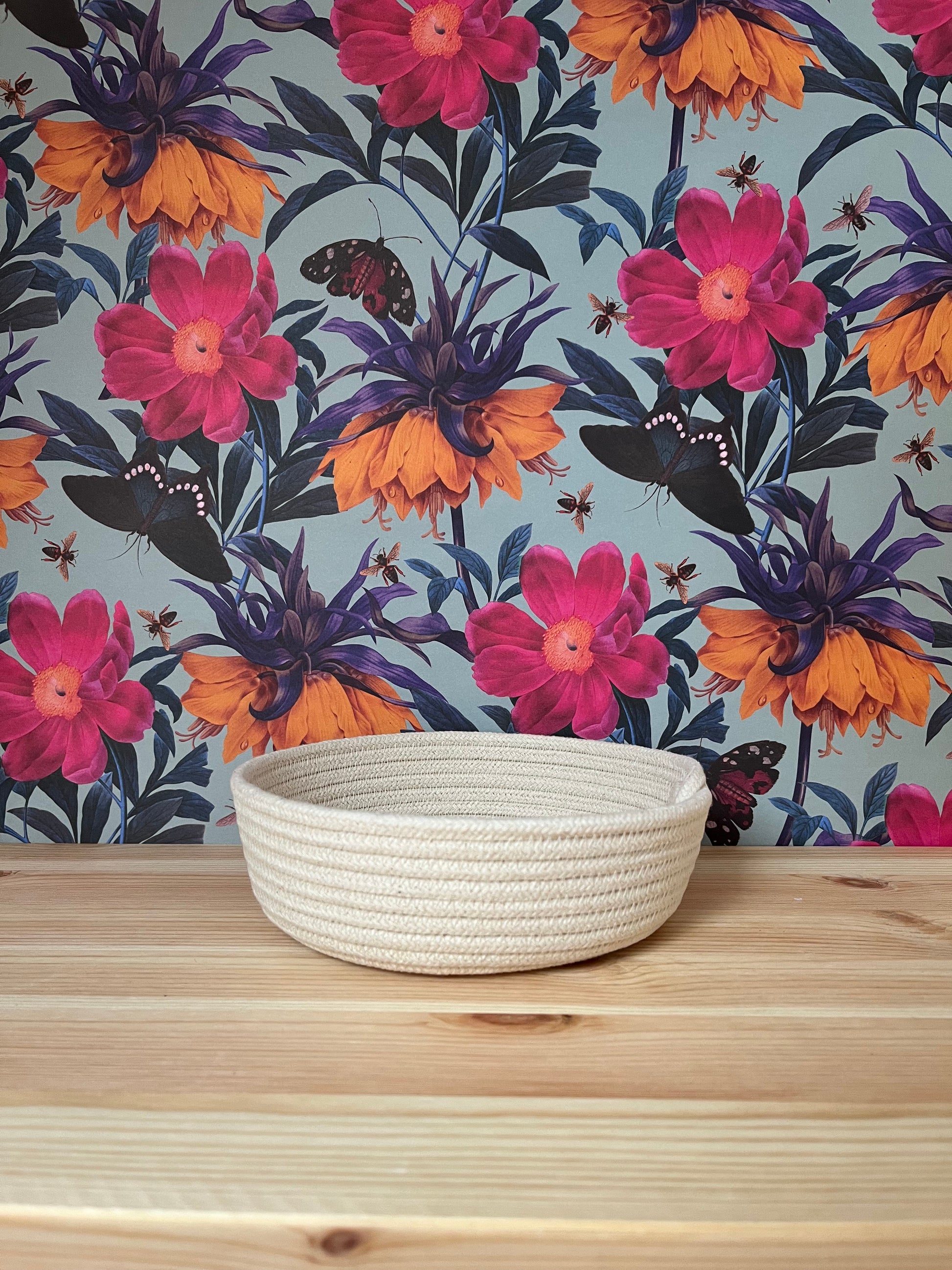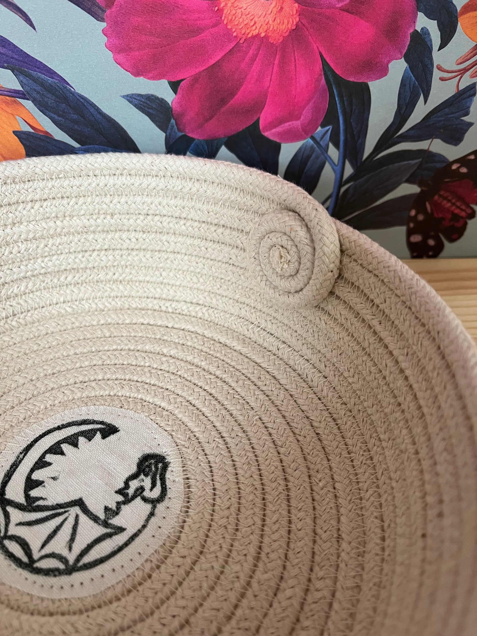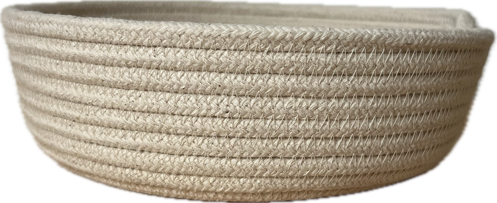 Every basket are unique and handmade by me in my studio in the Outer HebridesI use cotton rope made in England. Due to the handmade work, the diameter and the high can vary.