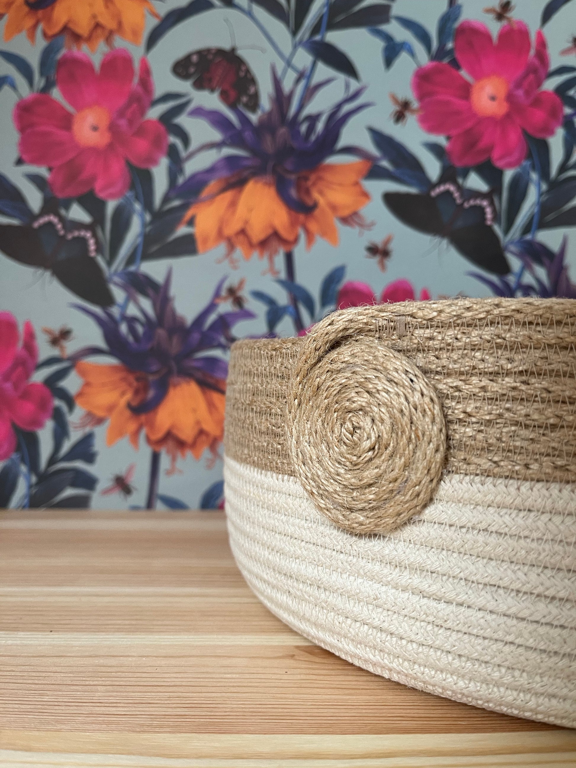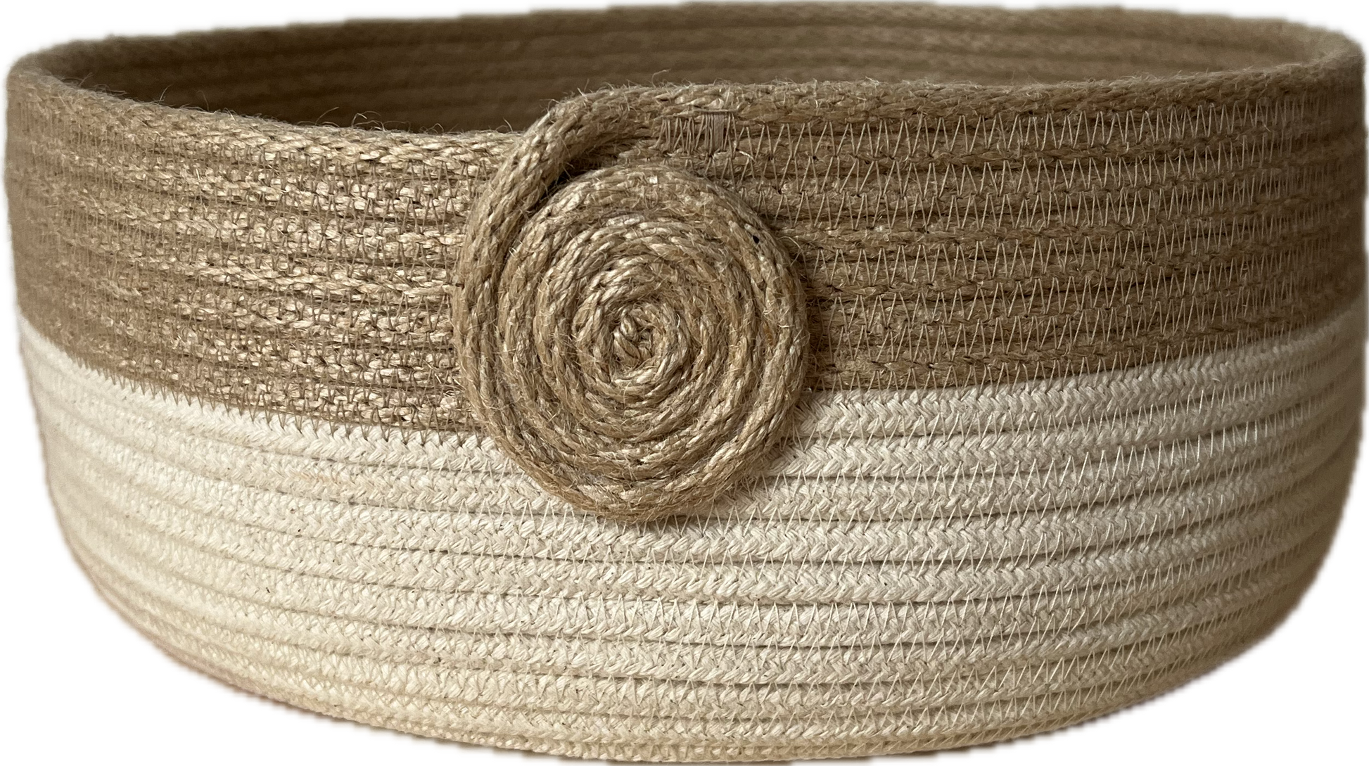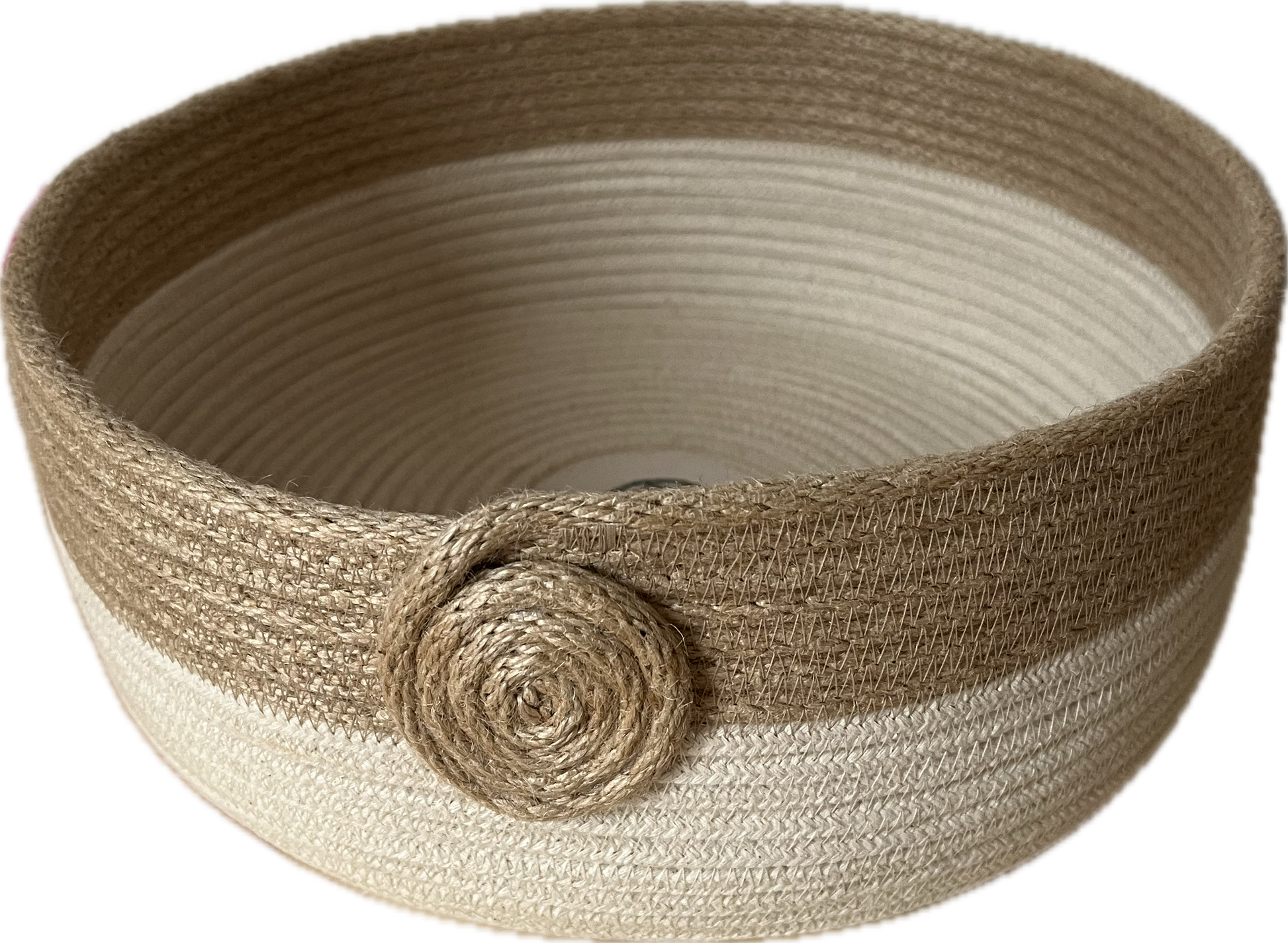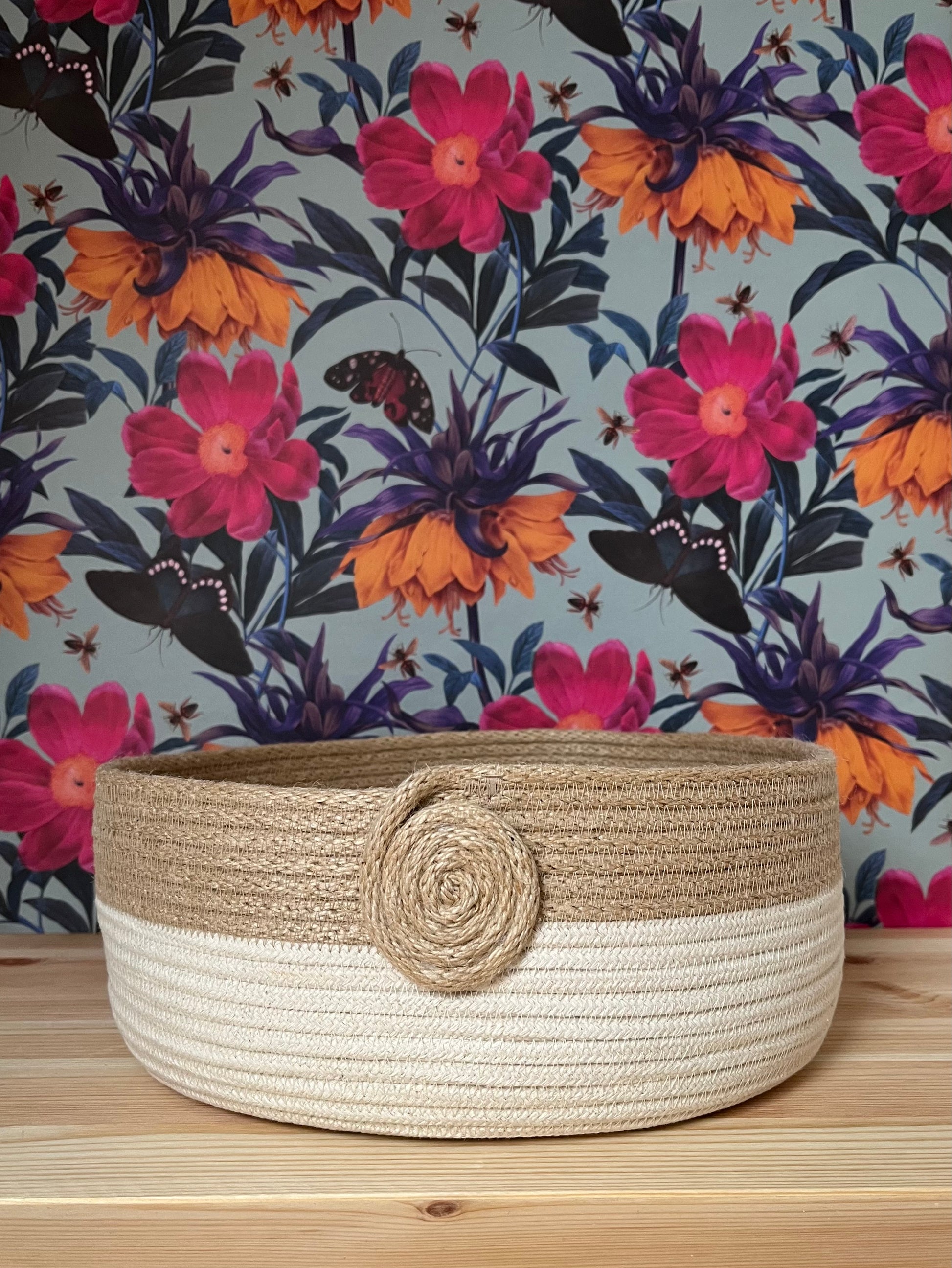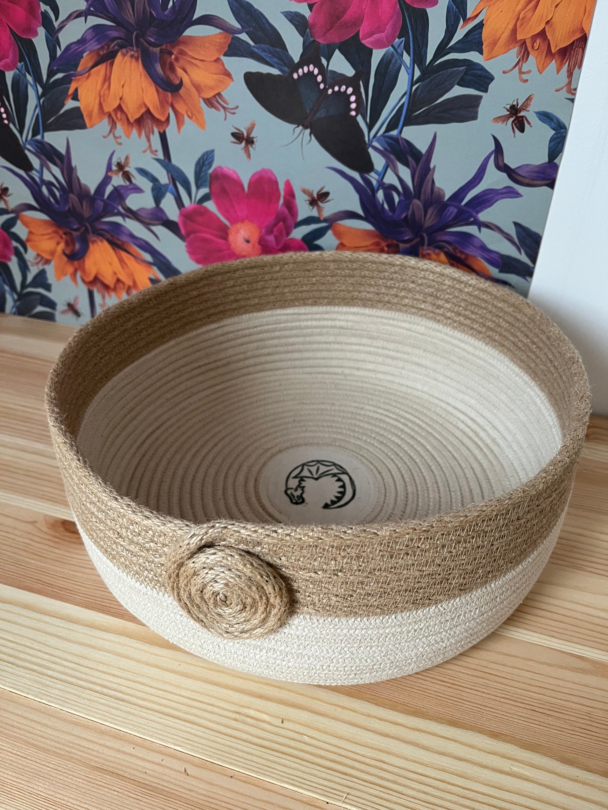 Every basket are unique and handmade by me in my studio in the Outer HebridesI use cotton rope made in England. Due to the handmade work, the diameter and the high can vary.