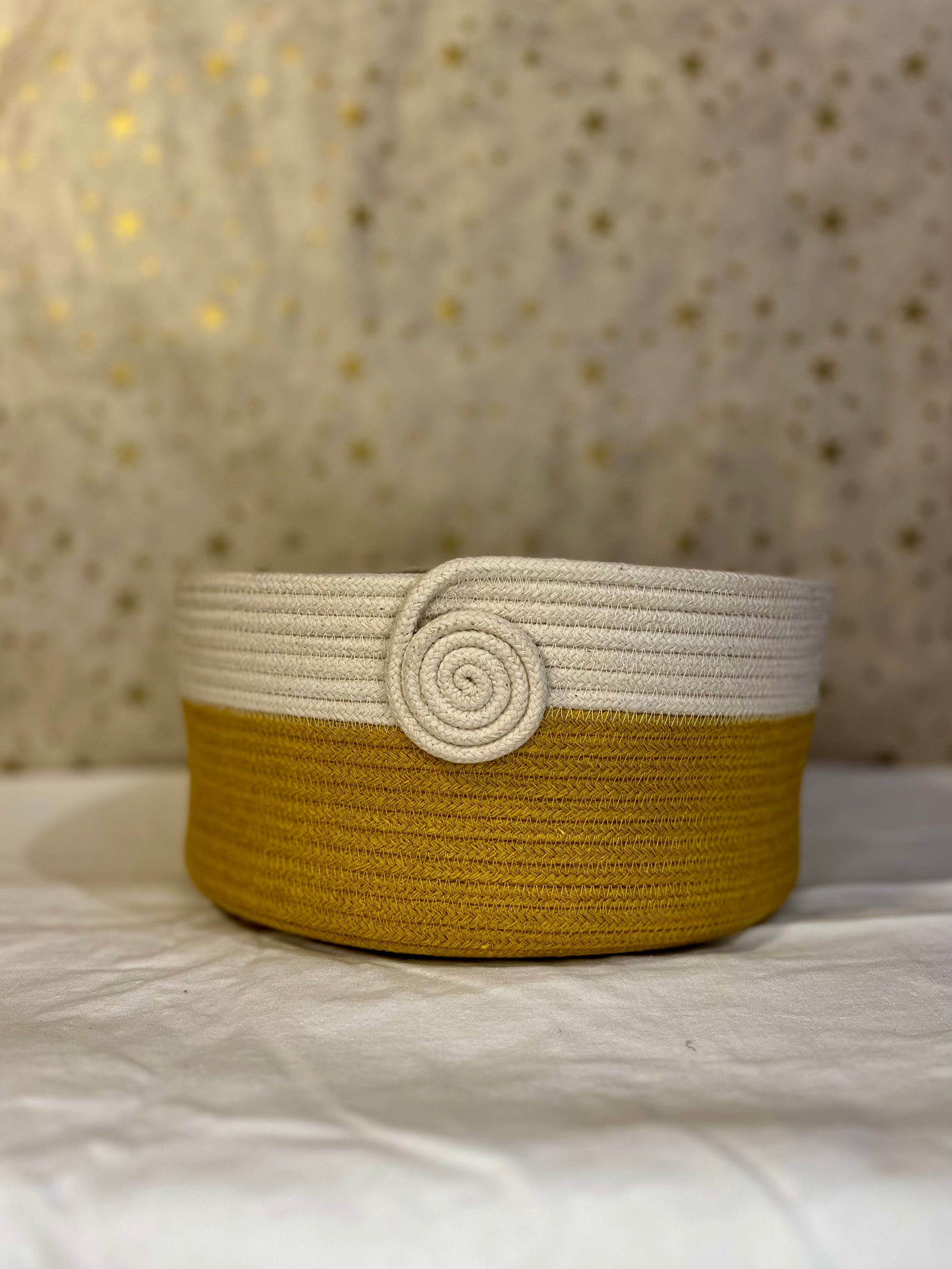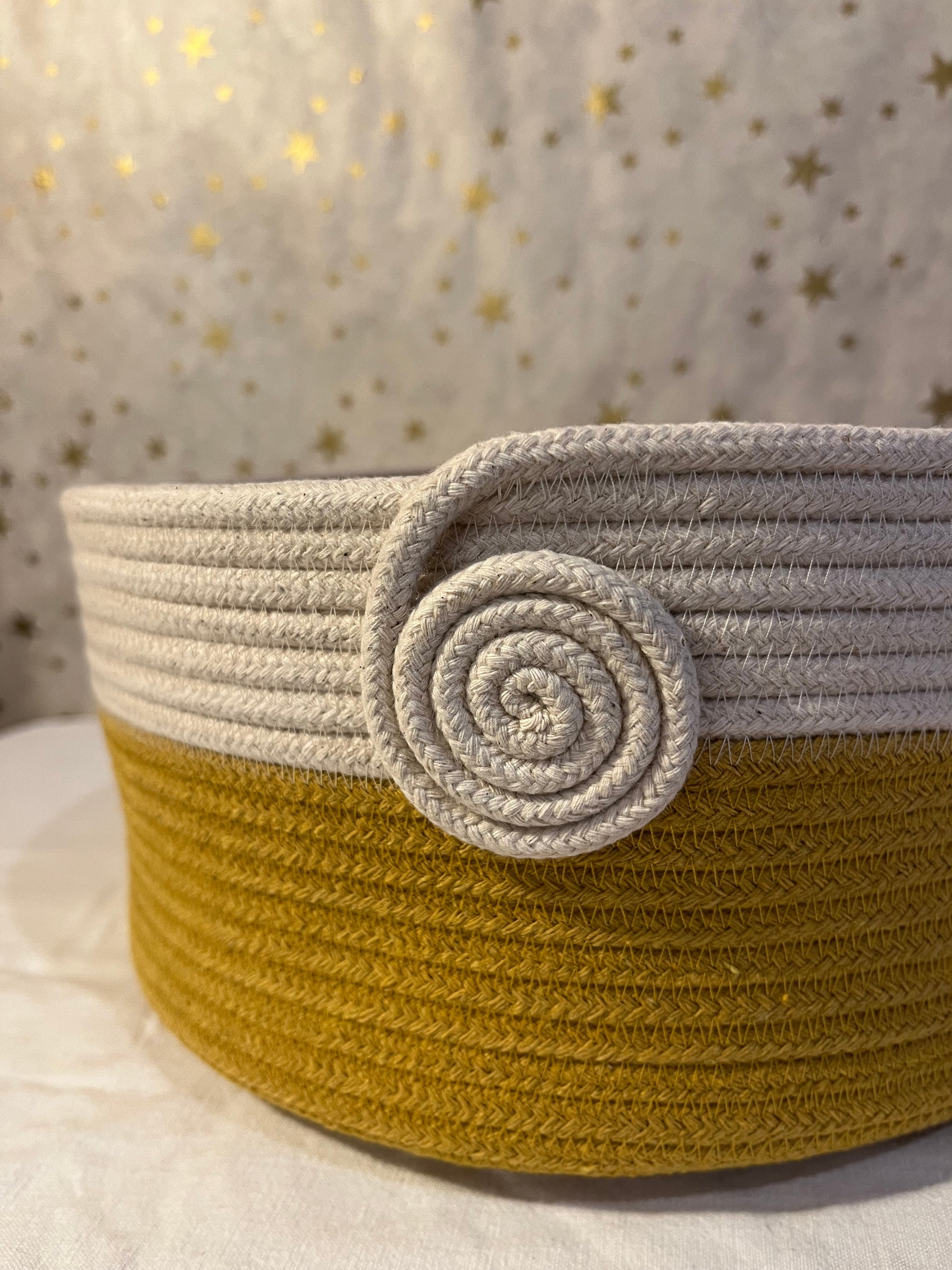 Every basket are unique and handmade by me in my studio in the Outer HebridesI use cotton rope made in England. Due to the handmade work, the diameter and the high can vary.