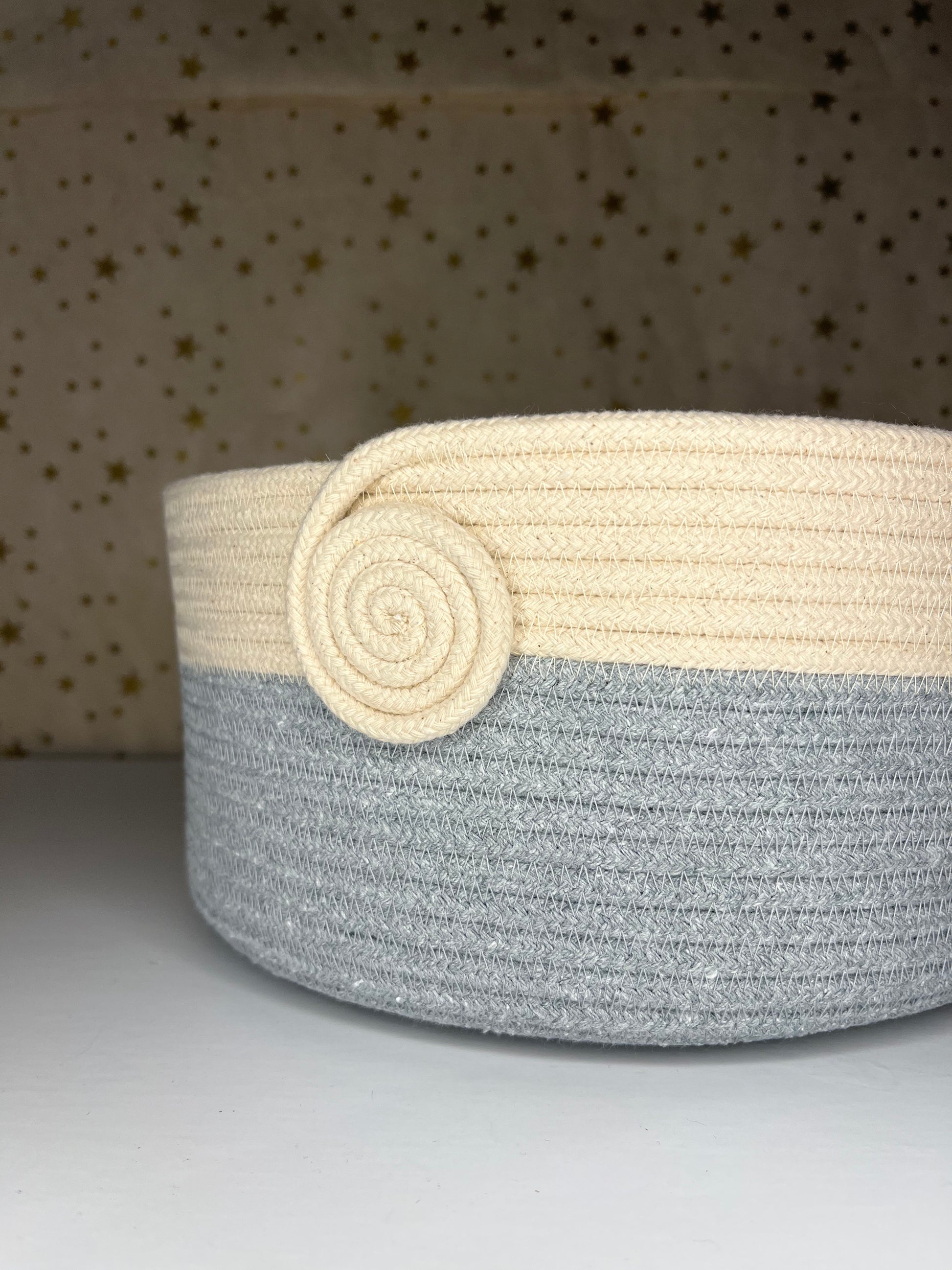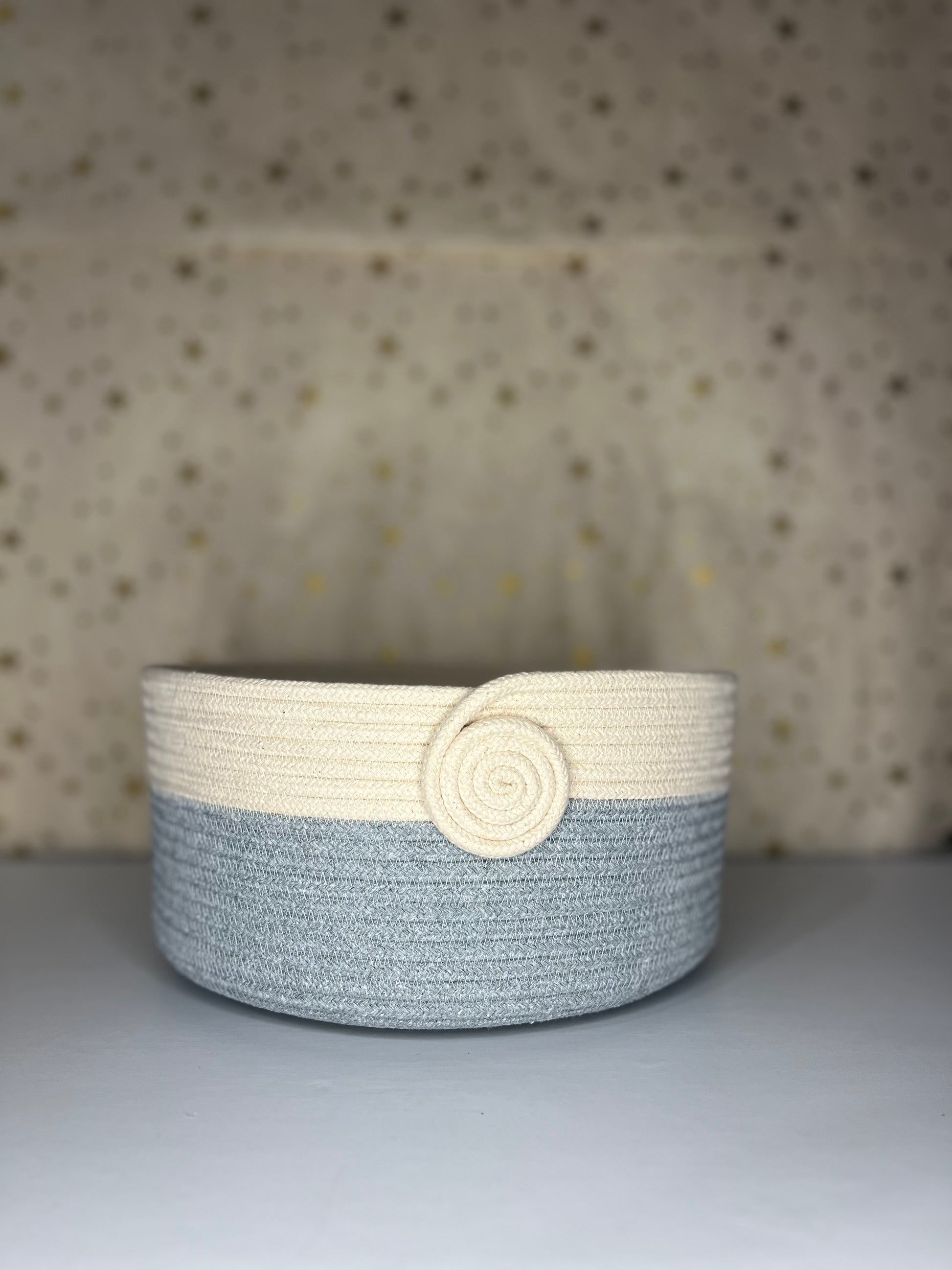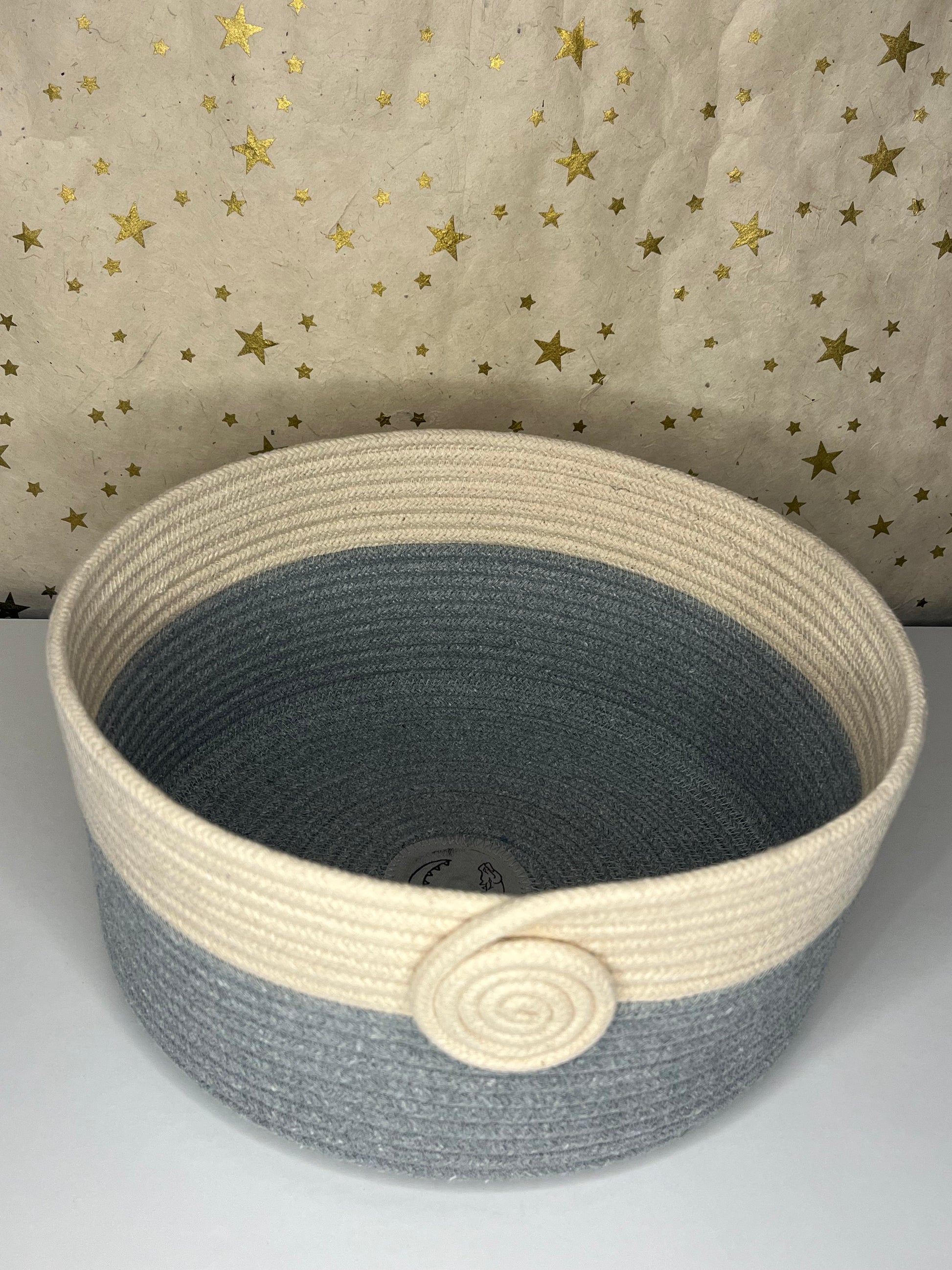 Every basket are unique and handmade by me in my studio in the Outer HebridesI use cotton rope made in England. Due to the handmade work, the diameter and the high can vary.