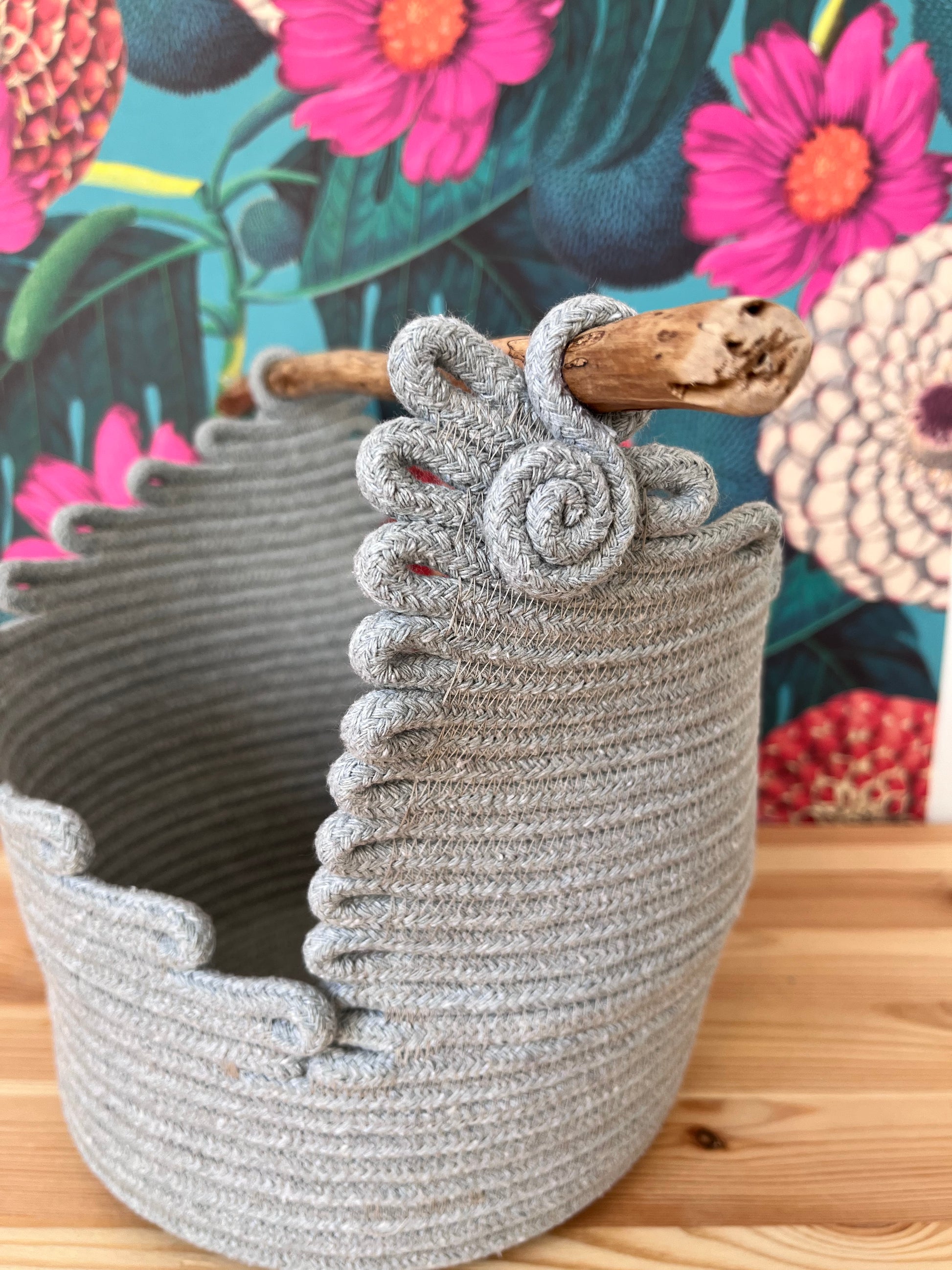 This basket is for a decorative function in your home. Each piece created in the collection is unique. The driftwood is collected on the nearby beach surrounding the Isle of Lewis. the collecting days take place after a storm, when the sea is rejecting what does not belong to it.