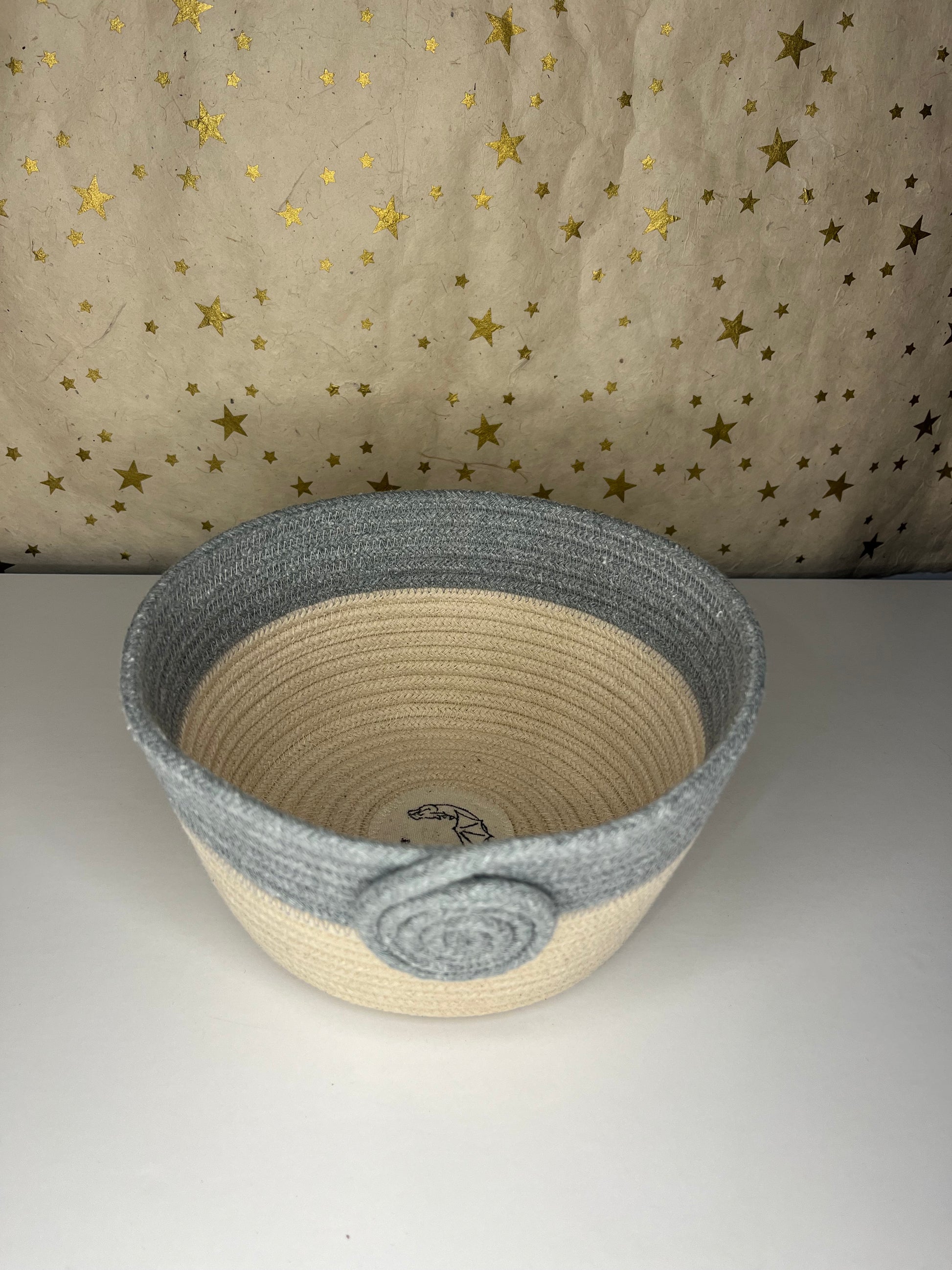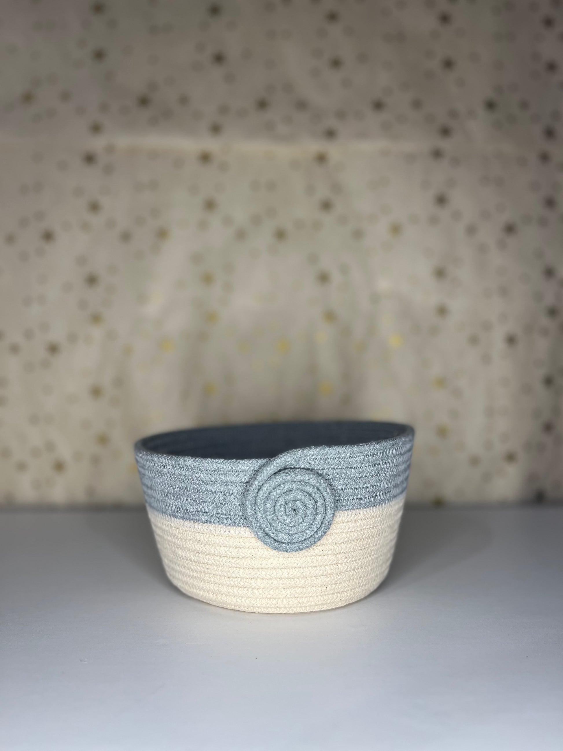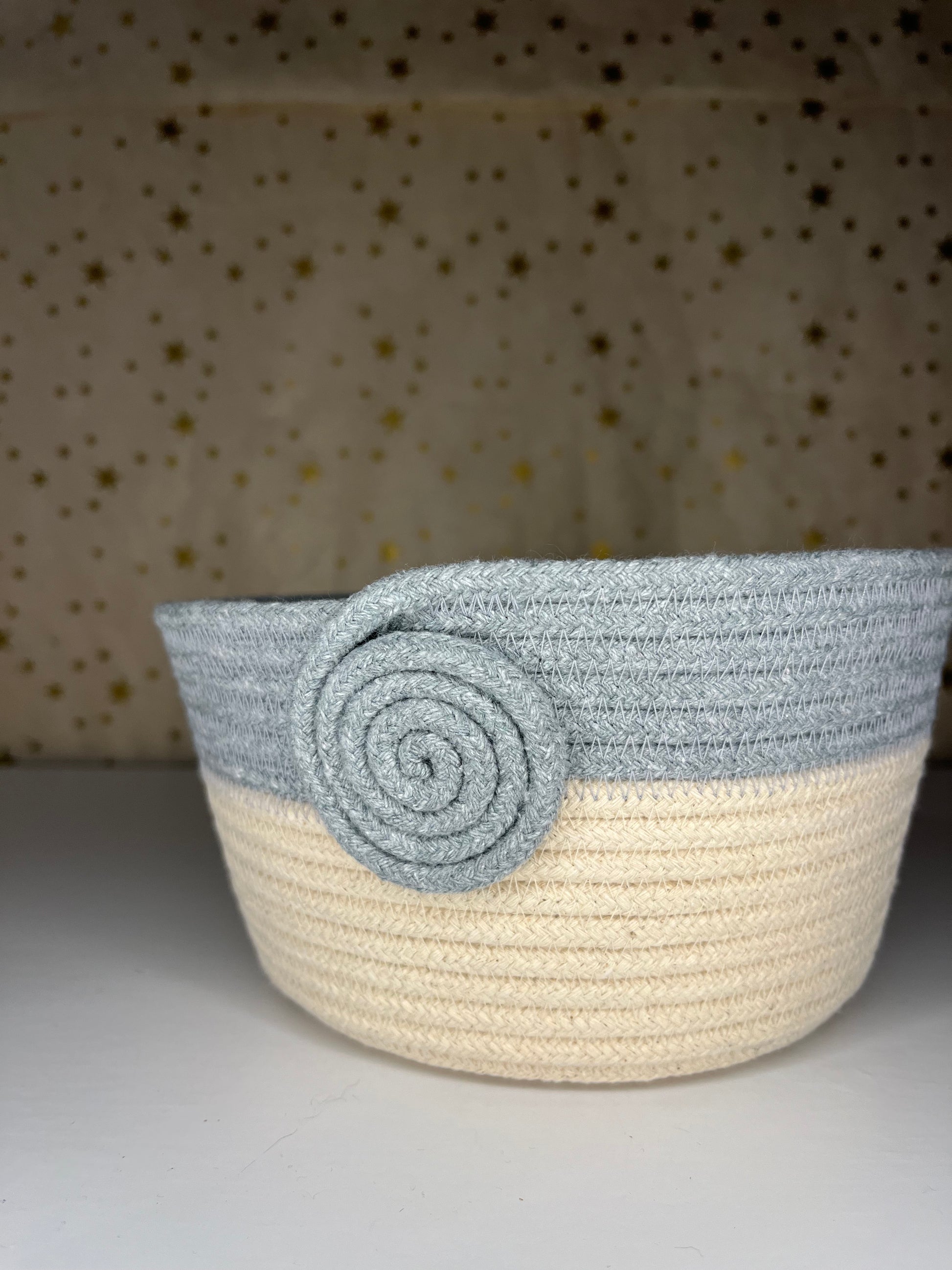 Every basket are unique and handmade by me in my studio in the Outer HebridesI use cotton rope made in England. Due to the handmade work, the diameter and the high can vary.
