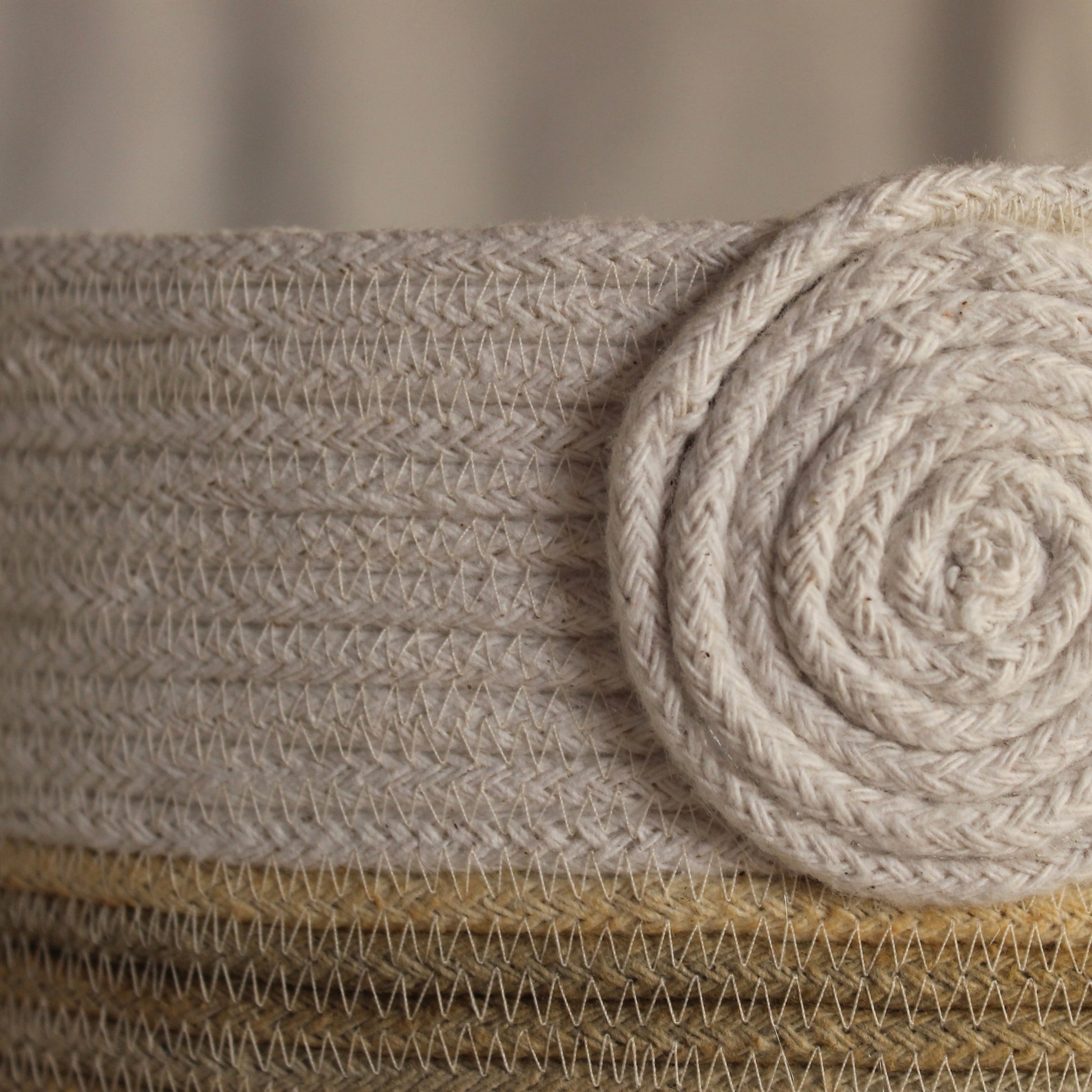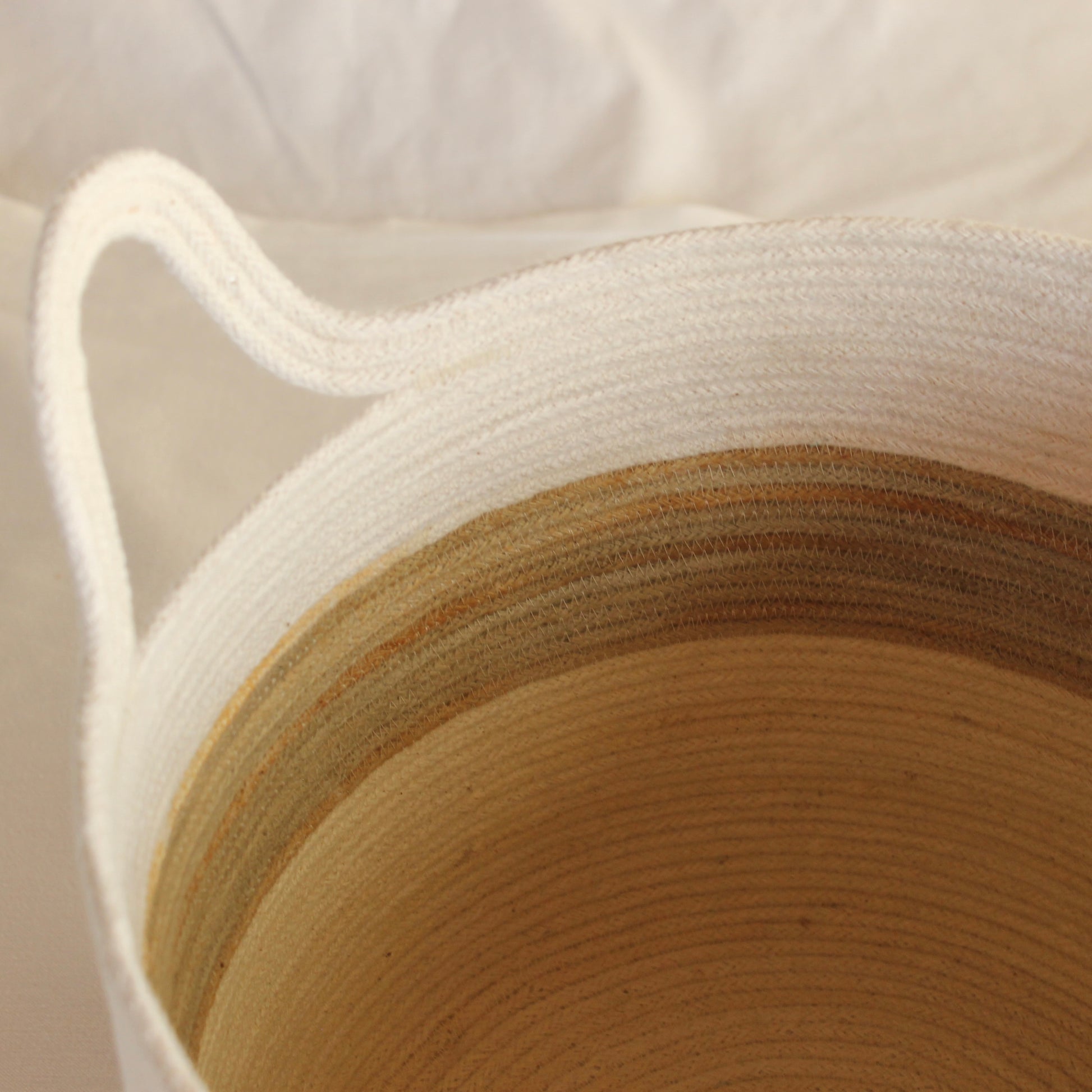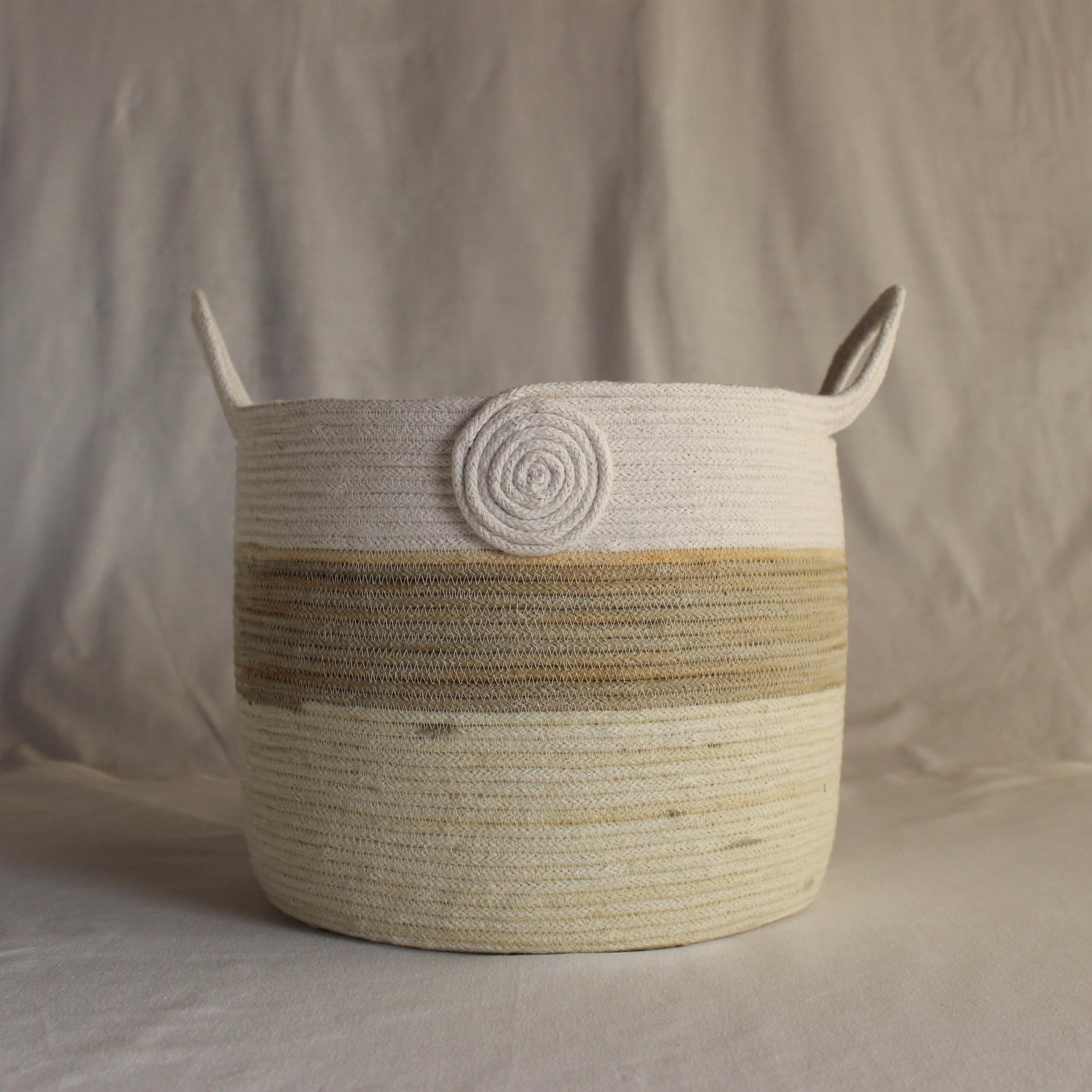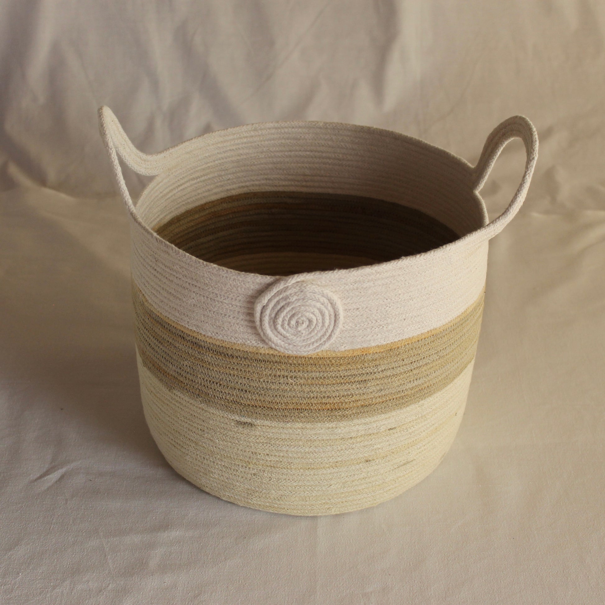 Every basket are unique and handmade by me in my studio in the Outer Hebrides. I use cotton rope made in England that I dye with plants growing in the Outer Hebrides or from my kitchen wastes. Due to the handmade work, the diameter and the high can vary.